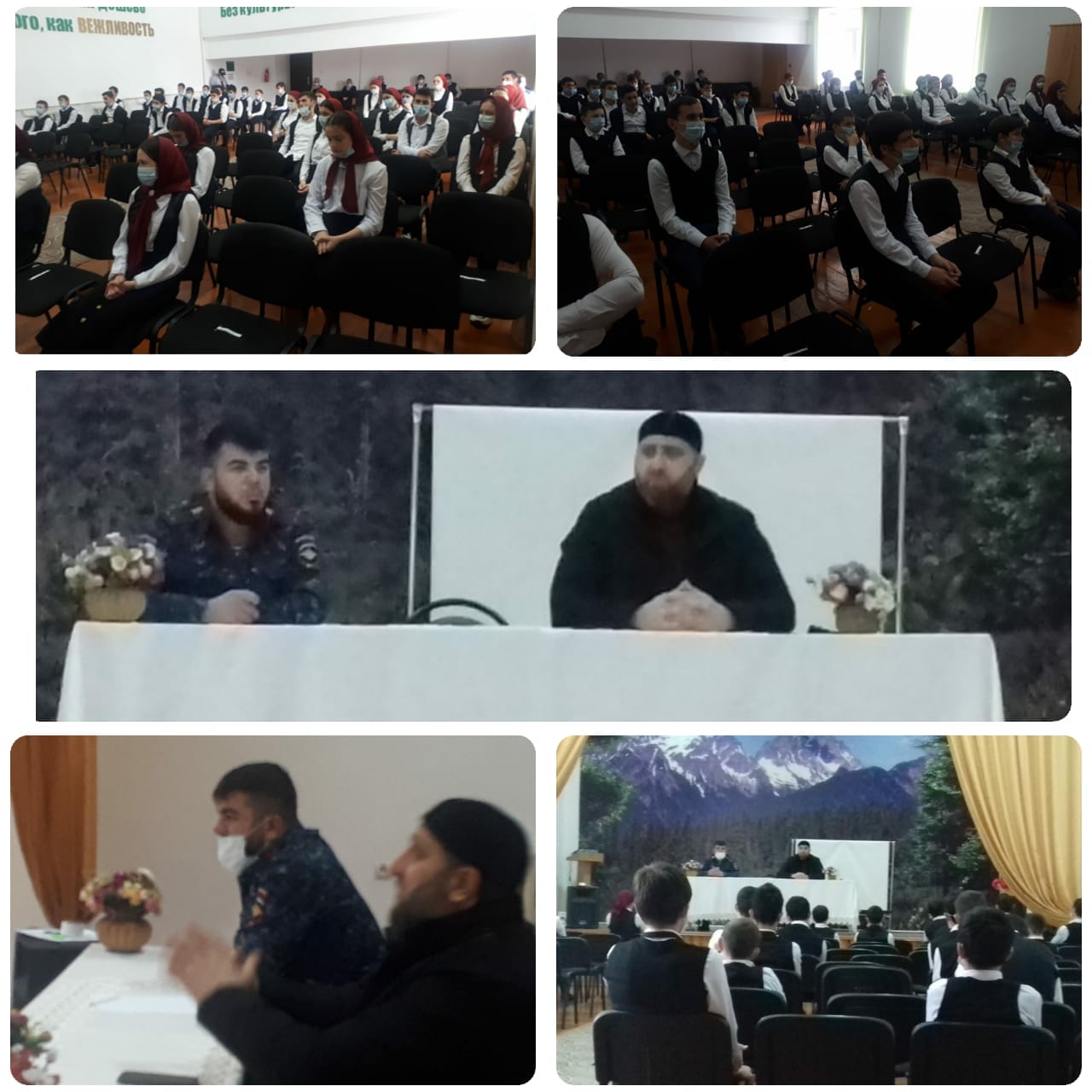 12.11.2020г. в актовом зале школы Кадий Веденского района Газимагамаев И.А. и Алатаев К.Х. мл. лейтенант полиции провели беседу с учащимися старших классов на тему: "Жизнь ПРОРОКА МУХЬАММАДА" (с.а.в.)