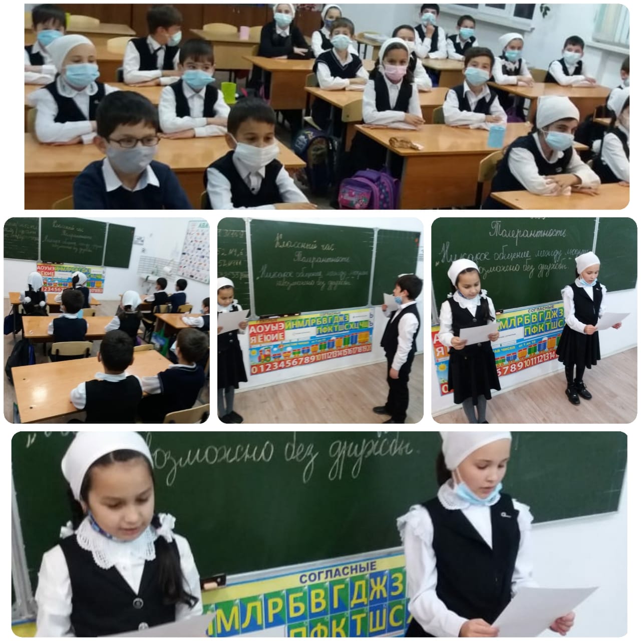 12.11.2020г. учительница начальных классов Вацанаева Халимат Магомедовна в 3"Б"классе провела классный час на тему: "Толерантность".