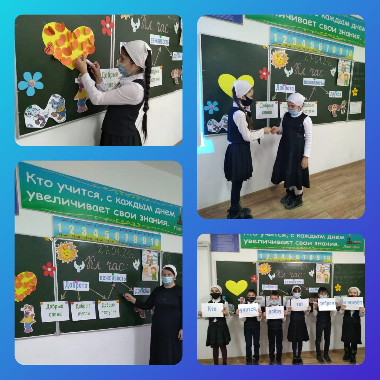 27.01.2021г. учительница начальных классов Хизриева Лариса Мустафаевна провела классный час в 3 классе на тему: "Доброта, вежливость, дружба".