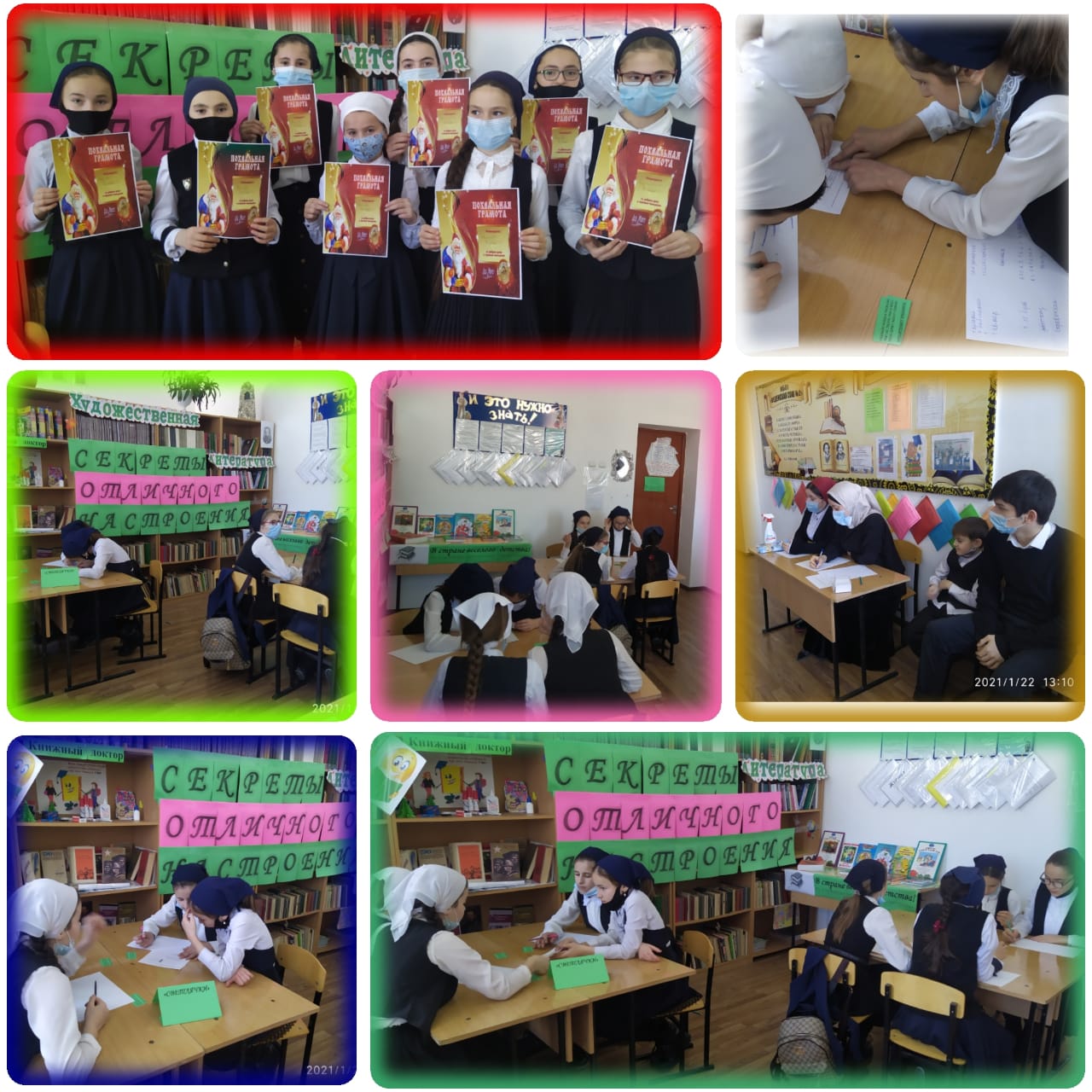 21.01.202121.01.2021г. библиотекарь Хизриева Има Саламбековна с учащимися 5 А класса провела выставку-игру: «Секреты отличного настроения»! Класс был разделен на 2 команды: "Светлячки" и "Радуга". Пятиклассники очень хорошо решали задания, отвечали на вопросы, отгадывали загадки! Обе команды хорошо справлялись. Победила команда "Светлячки", эта команда набрала на несколько баллов больше, чем команда "Радуга". Учащиеся были награждены грамотами.