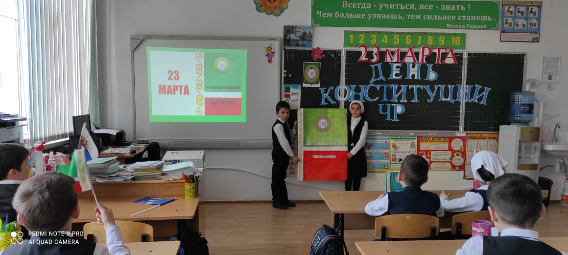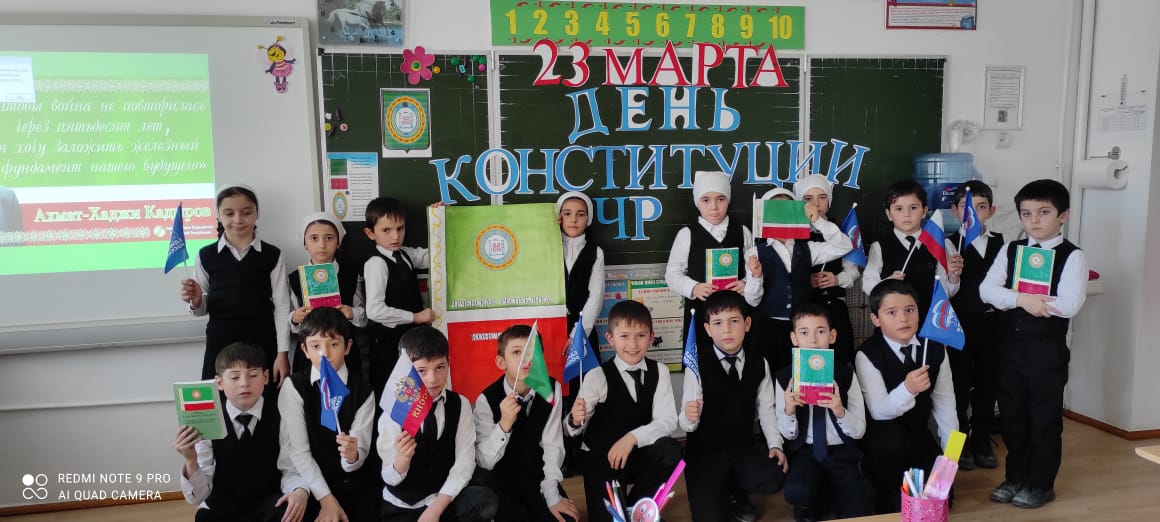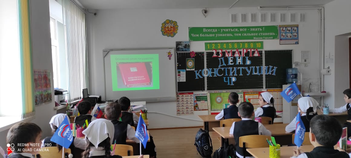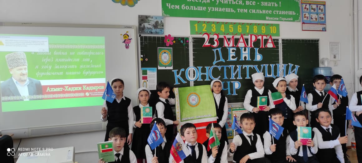 19.03.2021г. классный руководитель Гучигова Я.Т. провела во 2 «А» классе классный час на тему: «День Конституции ЧР».