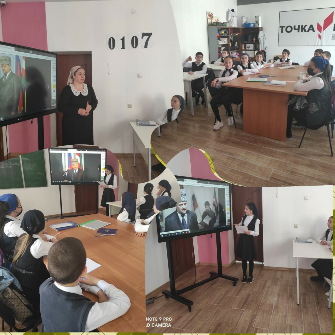 29.04.2021г. классный руководитель Инасаламова И.А. в 5"А" классе провела классный час на тему: «Урок Мужества. Памяти первого президента Чеченской Республики».
