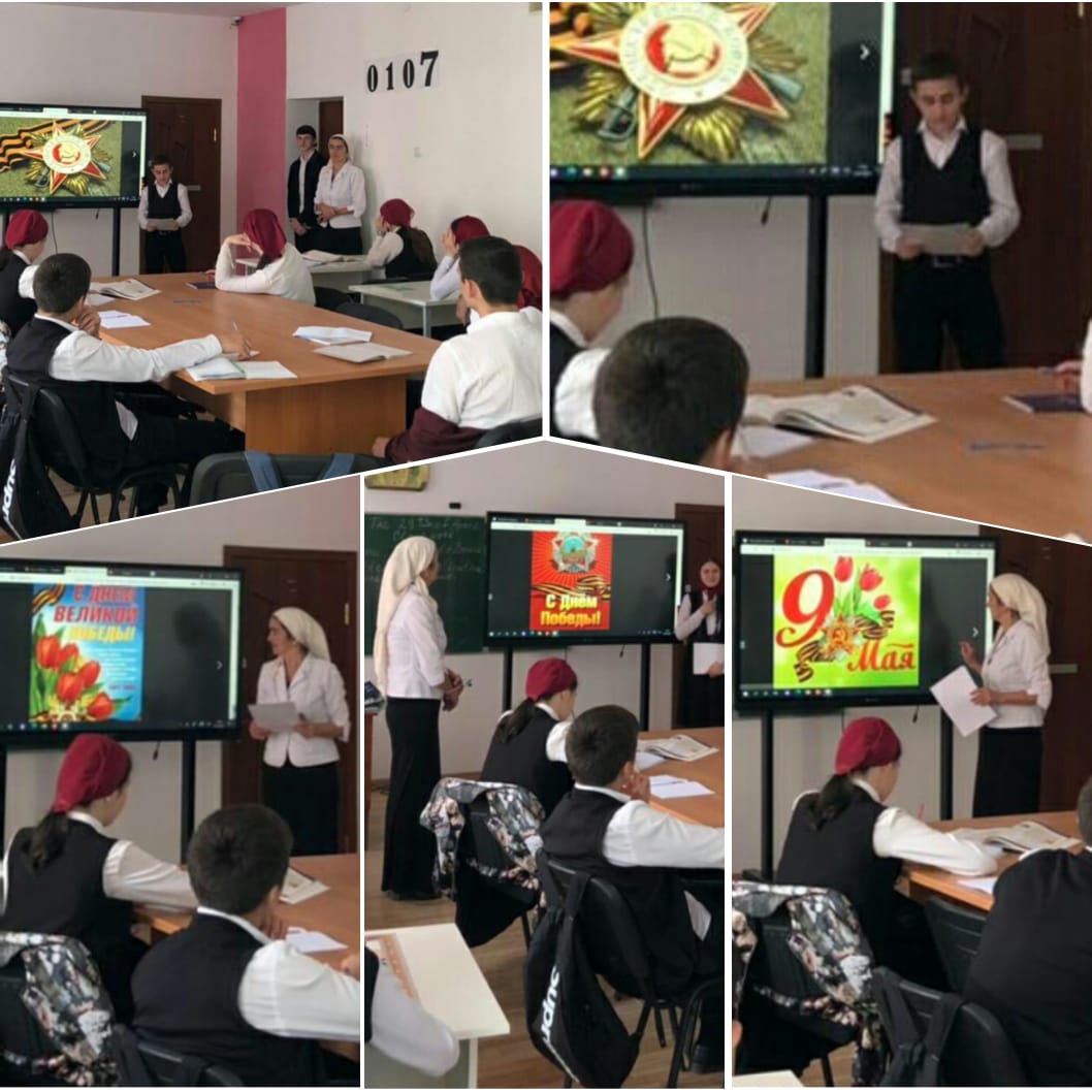 30.04.2021г. классный руководитель Баймурадова Х.Ю. в 9 «А» классе провела классный час, посвящённый Дню Победы.