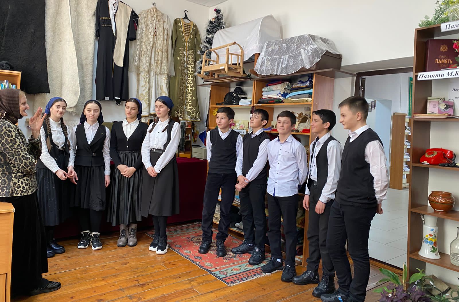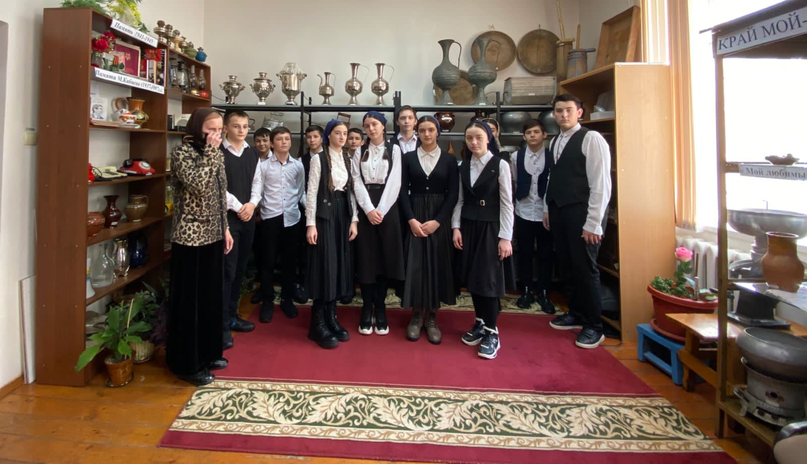 Классные руководители Музурова Т.Д., Юсупова А.И. и учащиеся 7 и 8 классов посетили Веденский краеведческий музей. Экскурсию провела заведующая музеем Бачигова Аминат. Она показала учащимся предметы быта наших предков и рассказала о том, как использовались эти предметы.
