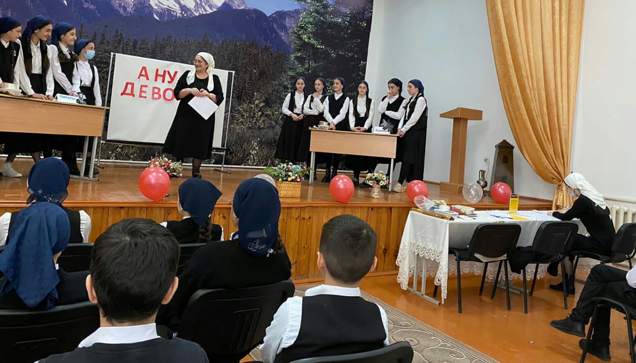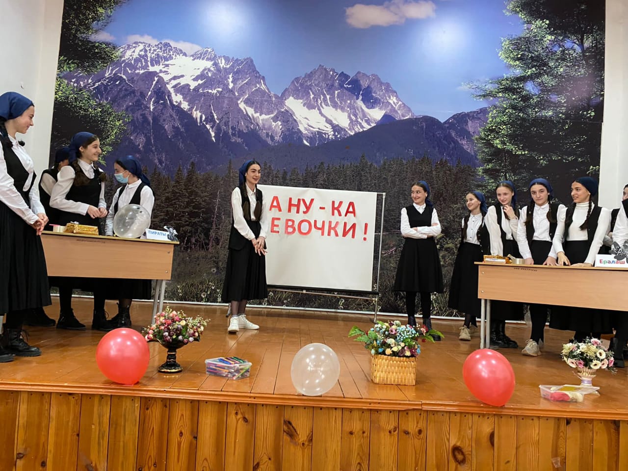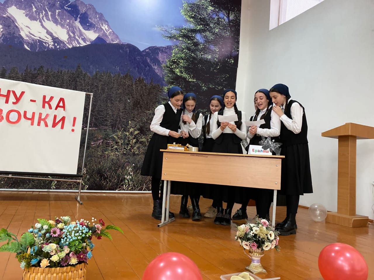 09.03.2022 г. классный руководитель Магомедова Р.Л. и девочки 7 «А» класса решили отметить интересной и веселой программой «А ну-ка, девочки!» в которой приняли участие команды девочек. В конкурсе проверяются не только эстетические качества девочек, но и смекалка, находчивость, юмор, способность ориентироваться в любой ситуации.