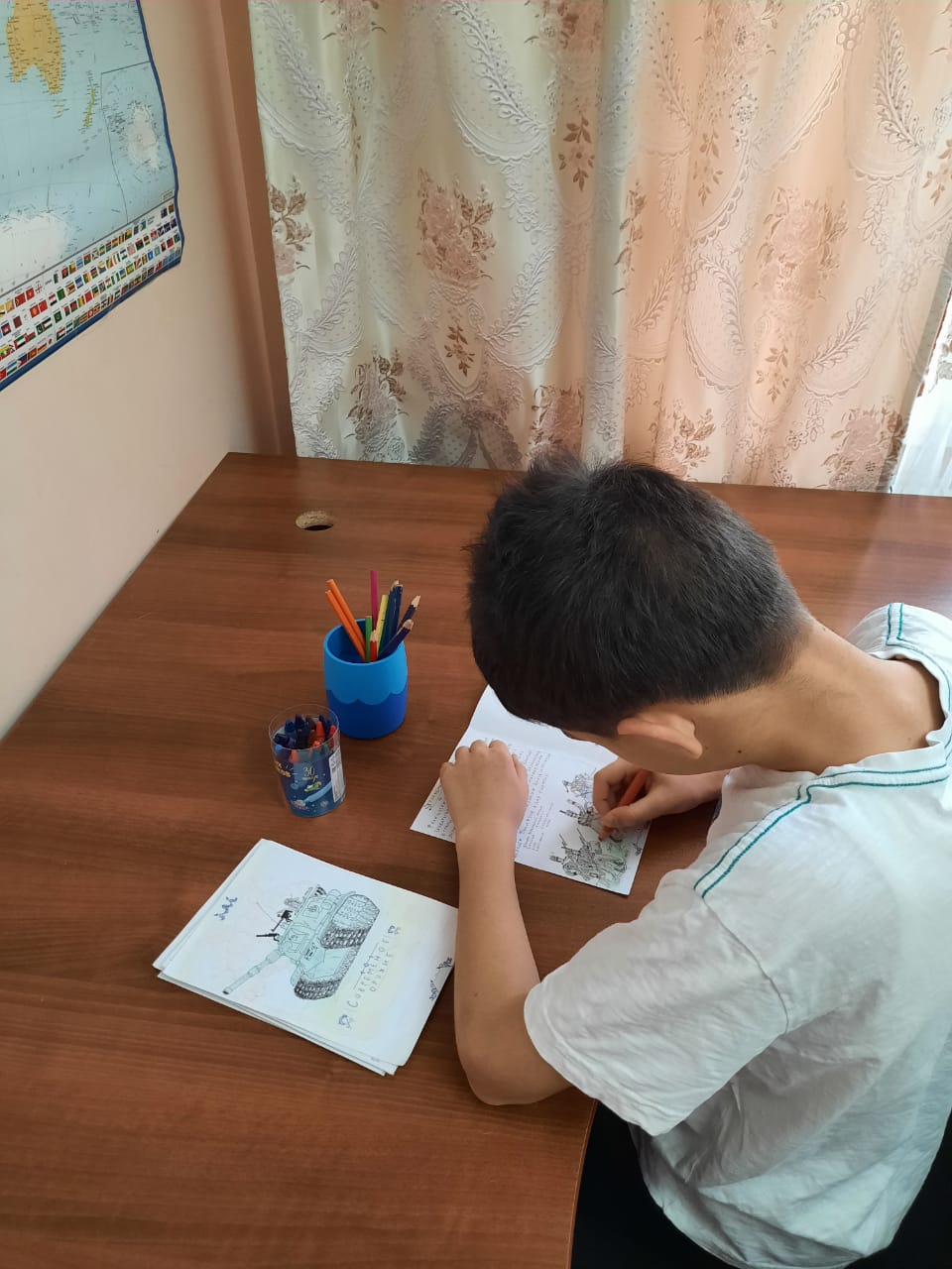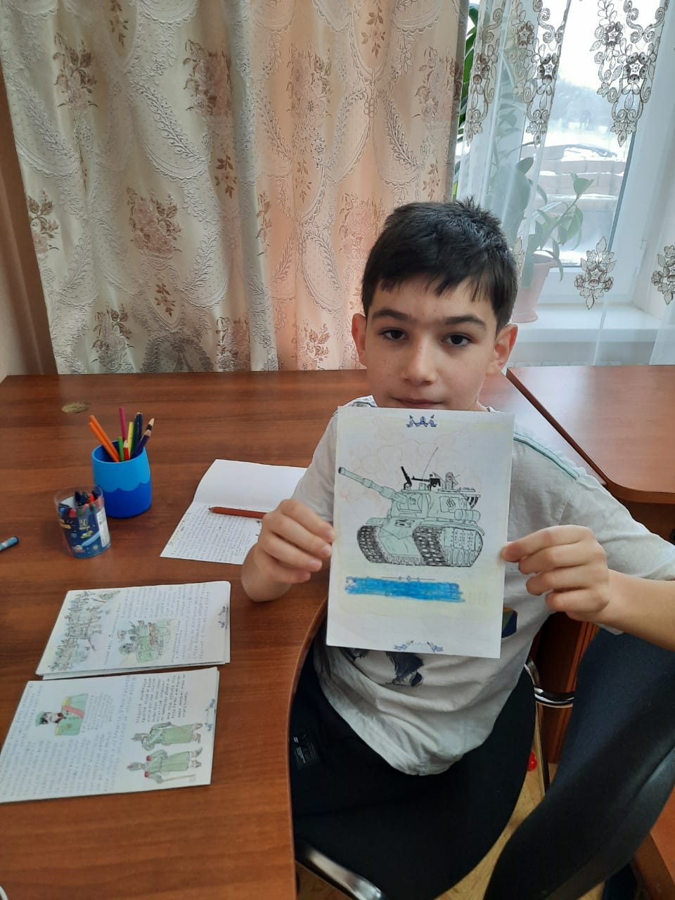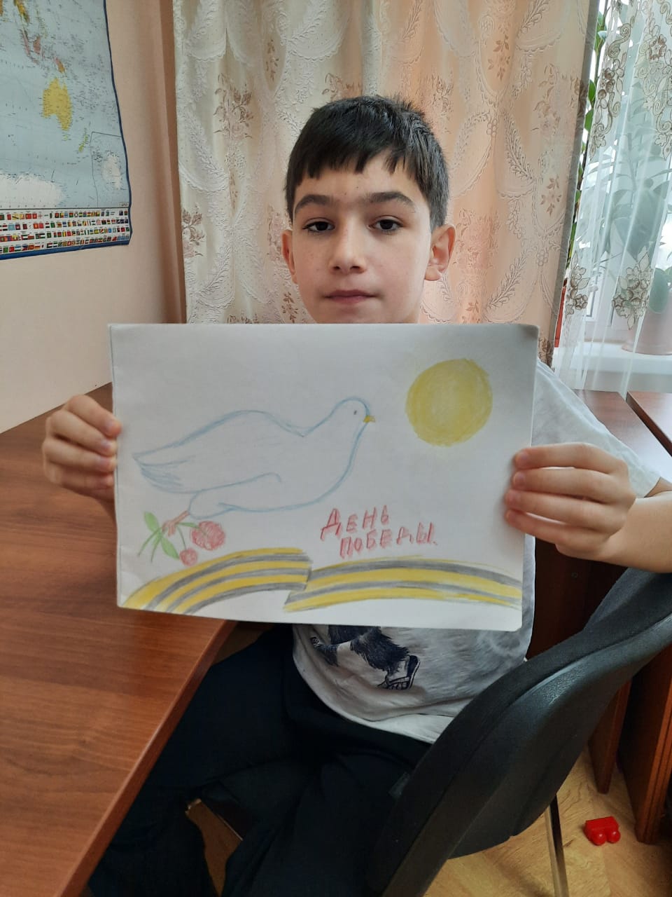 11.03.202211.03.2022 года Есамбулатов Саид ученик 7 «А» класса принял участие в акции «Рисуем Победу- 2022».