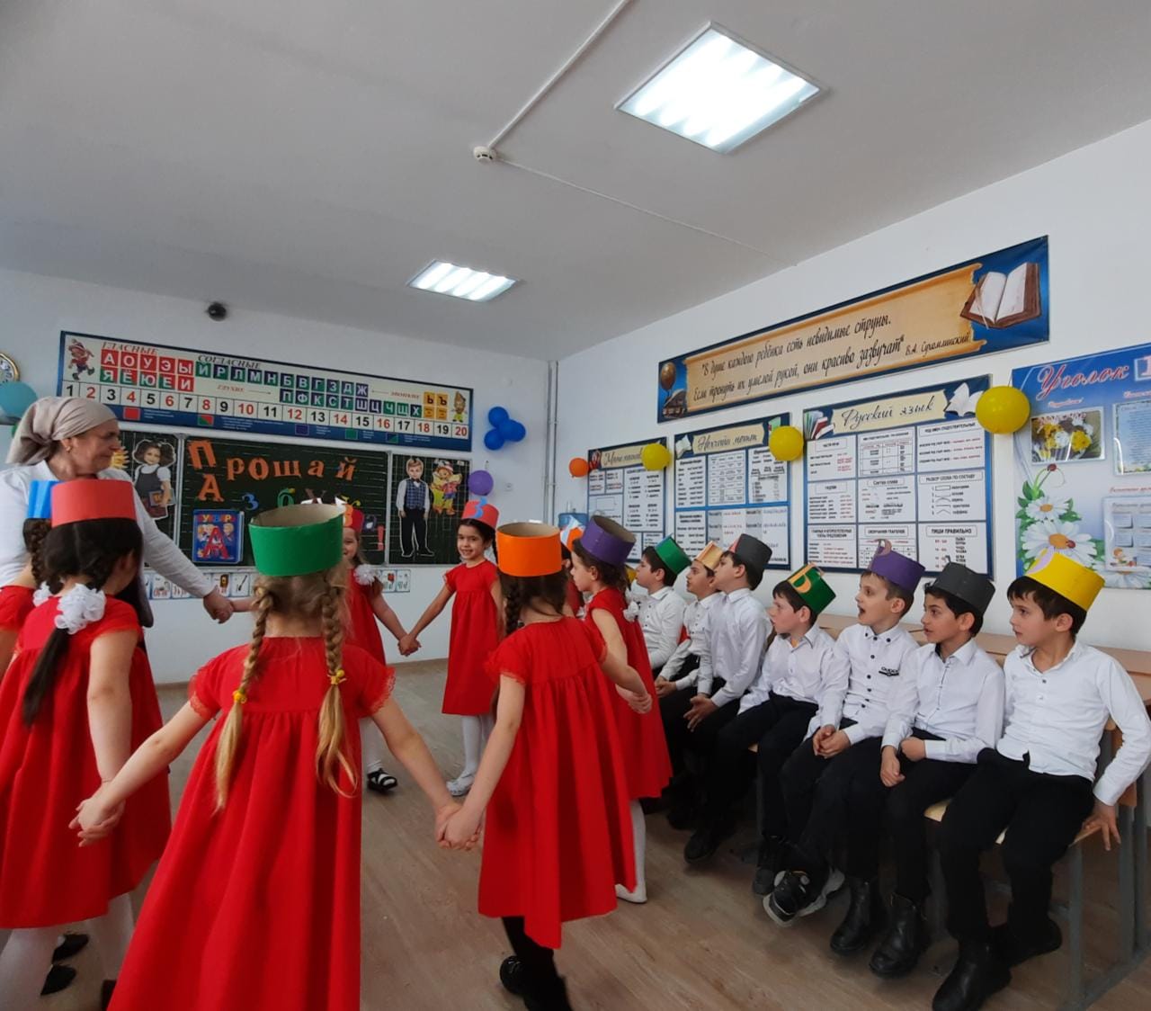 18.03.2022г. наши первоклашки из 1 «А» класса классный руководитель Исраилова И.С. попрощались со своим первым учебником Азбукой.