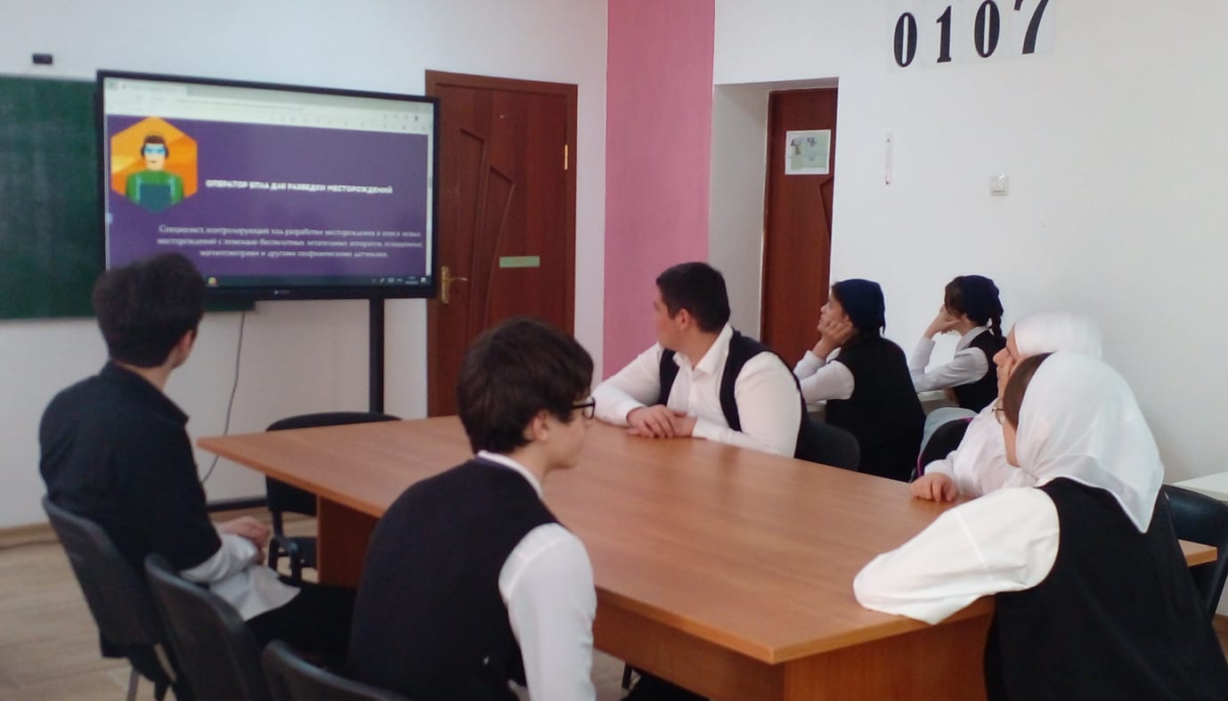 18.04.2022г. в целях эффективности реализации мероприятий федерального проекта «Современная школа» национального проекта «Образование», в центре «Точка роста» руководитель Баймурадова Х.Ю. провела семинар «Workshop-профессии будущего» с учащимися школы.