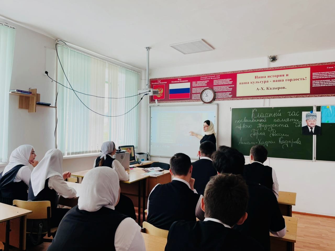 07.05.202207.05.2022г. в 11 классе был проведён классный час посвящённый памяти первого Президента Чеченской Республики, Героя России Ахмат-Хаджи Кадырова. В это траурный день ребята отдали дань уважения и памяти Ахмат-Хаджи Кадырову, выразив ему человеческую признательность.