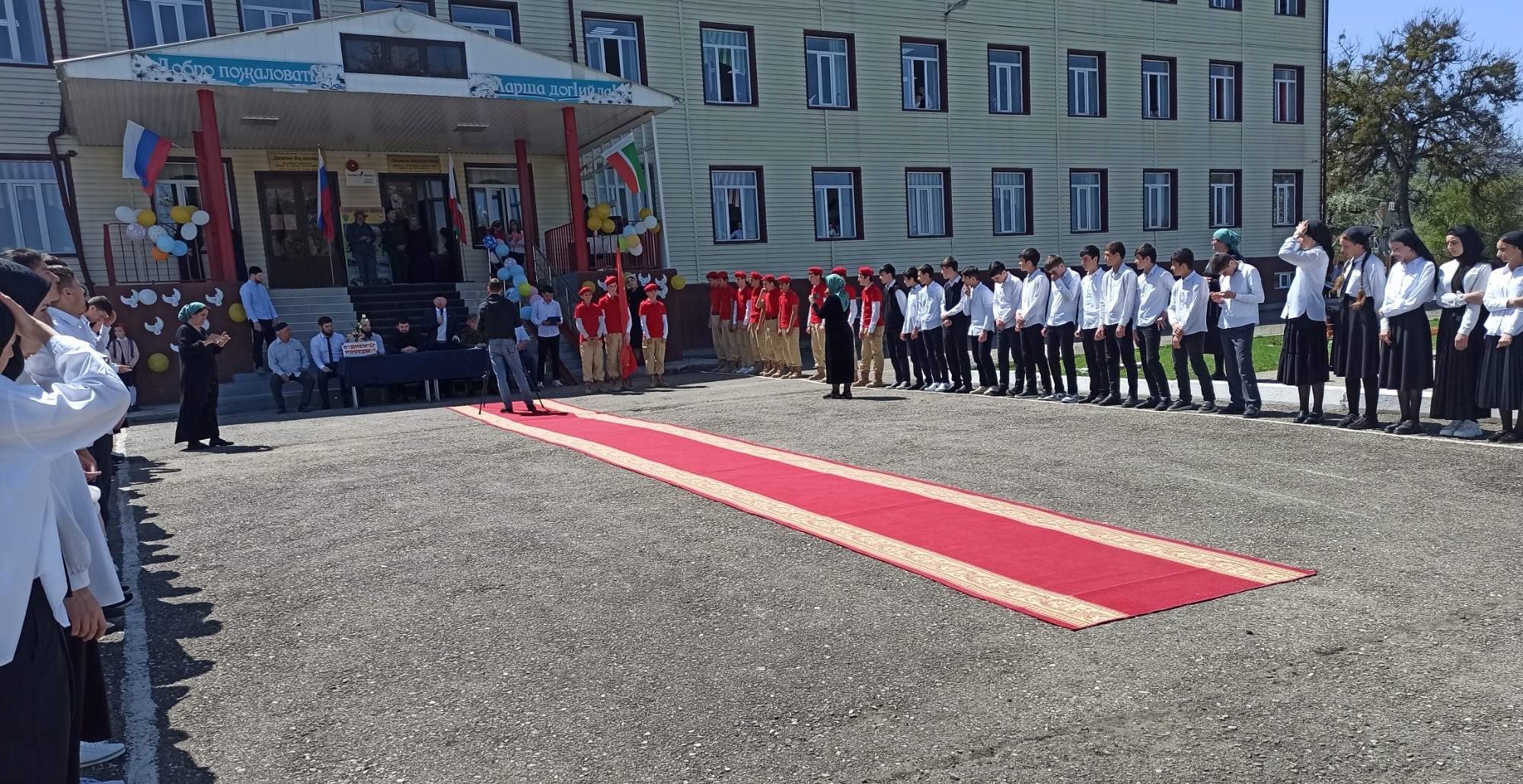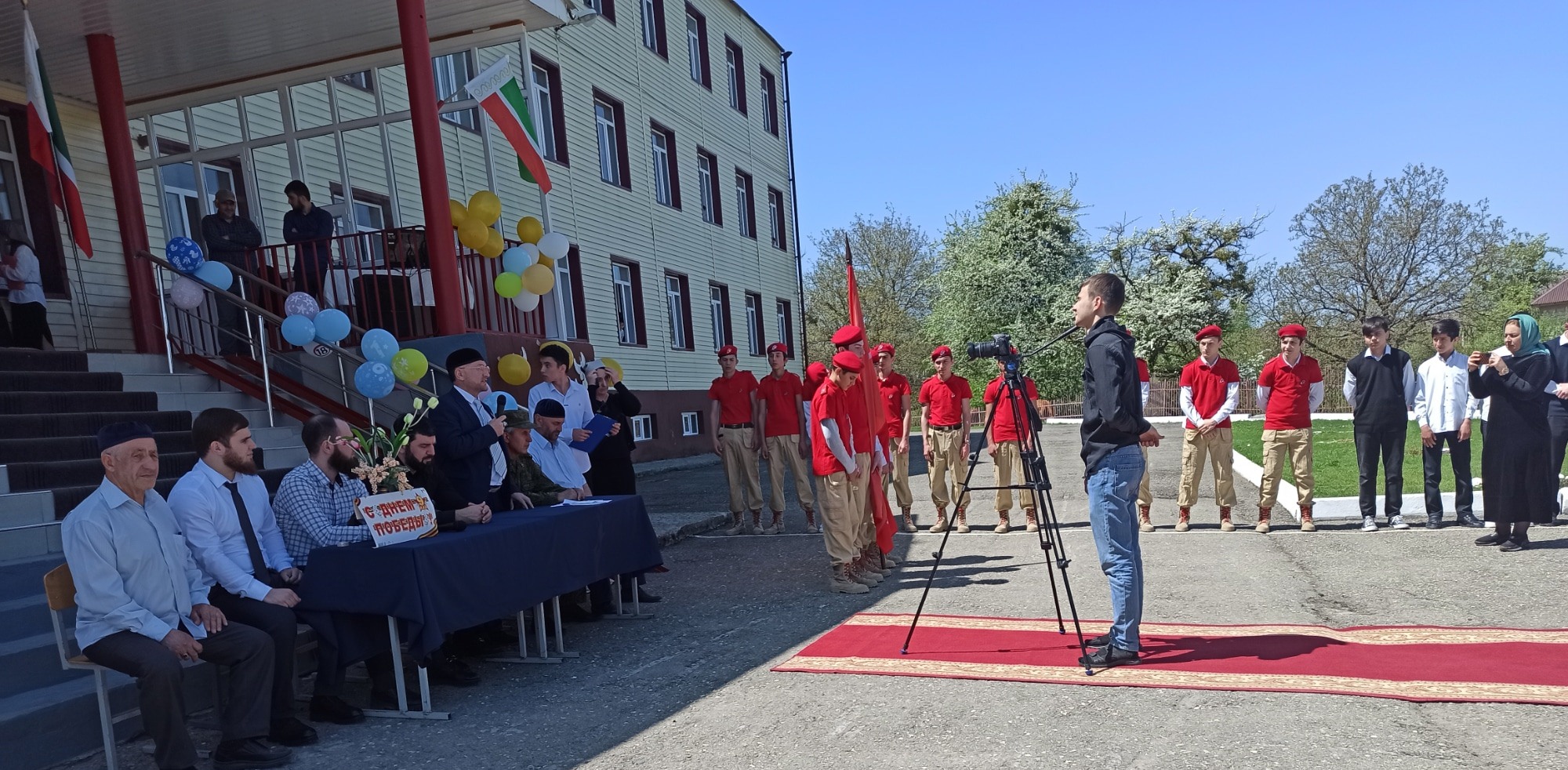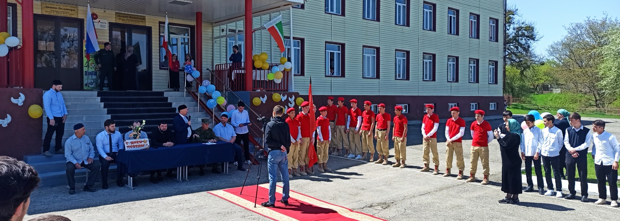 26.04.2022г. Веденский муниципальный район принимал Знамя Победы от Шалинского муниципального района. В передаче знамени приняли участие юнармейцы школы.