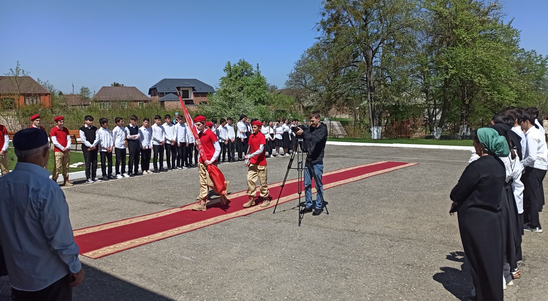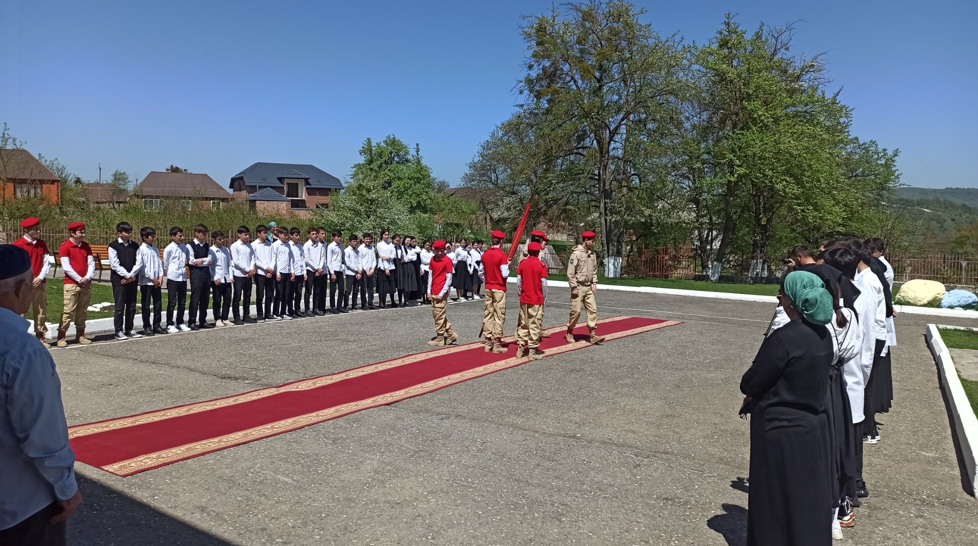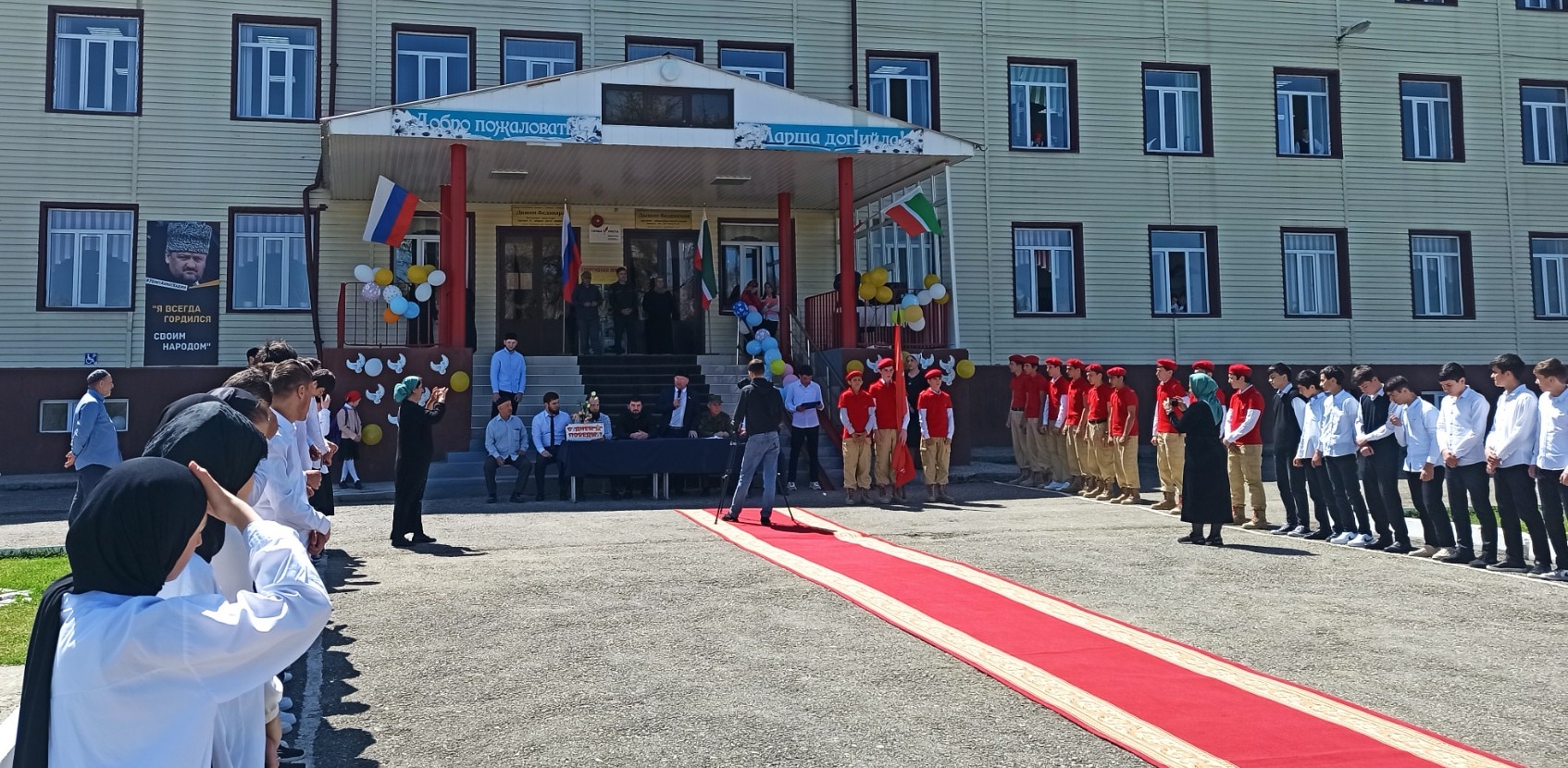 26.04.2022г. Веденский муниципальный район принимал Знамя Победы от Шалинского муниципального района. В передаче знамени приняли участие юнармейцы школы.