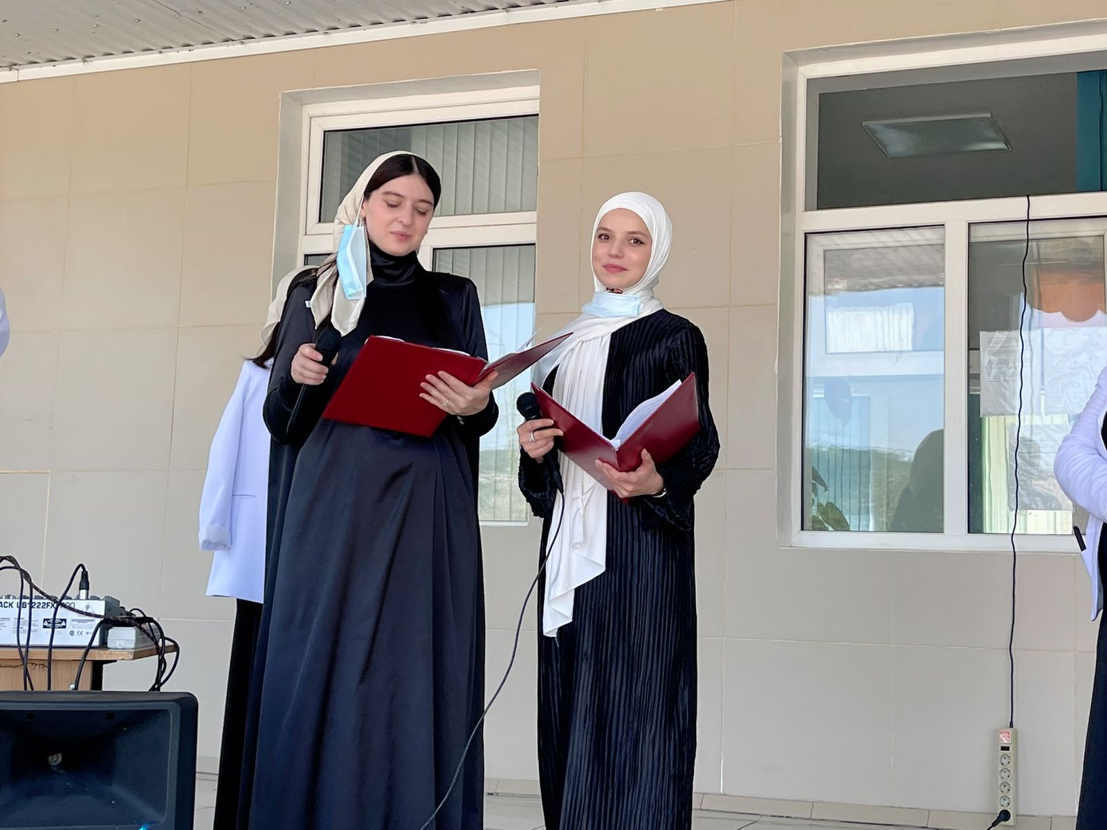 В ходе мероприятия, в рамках реализации федерального проекта «Патриотическое воспитание» под Гимны были вынесены и подняты флаги Российской Федерации и Чеченской Республики.