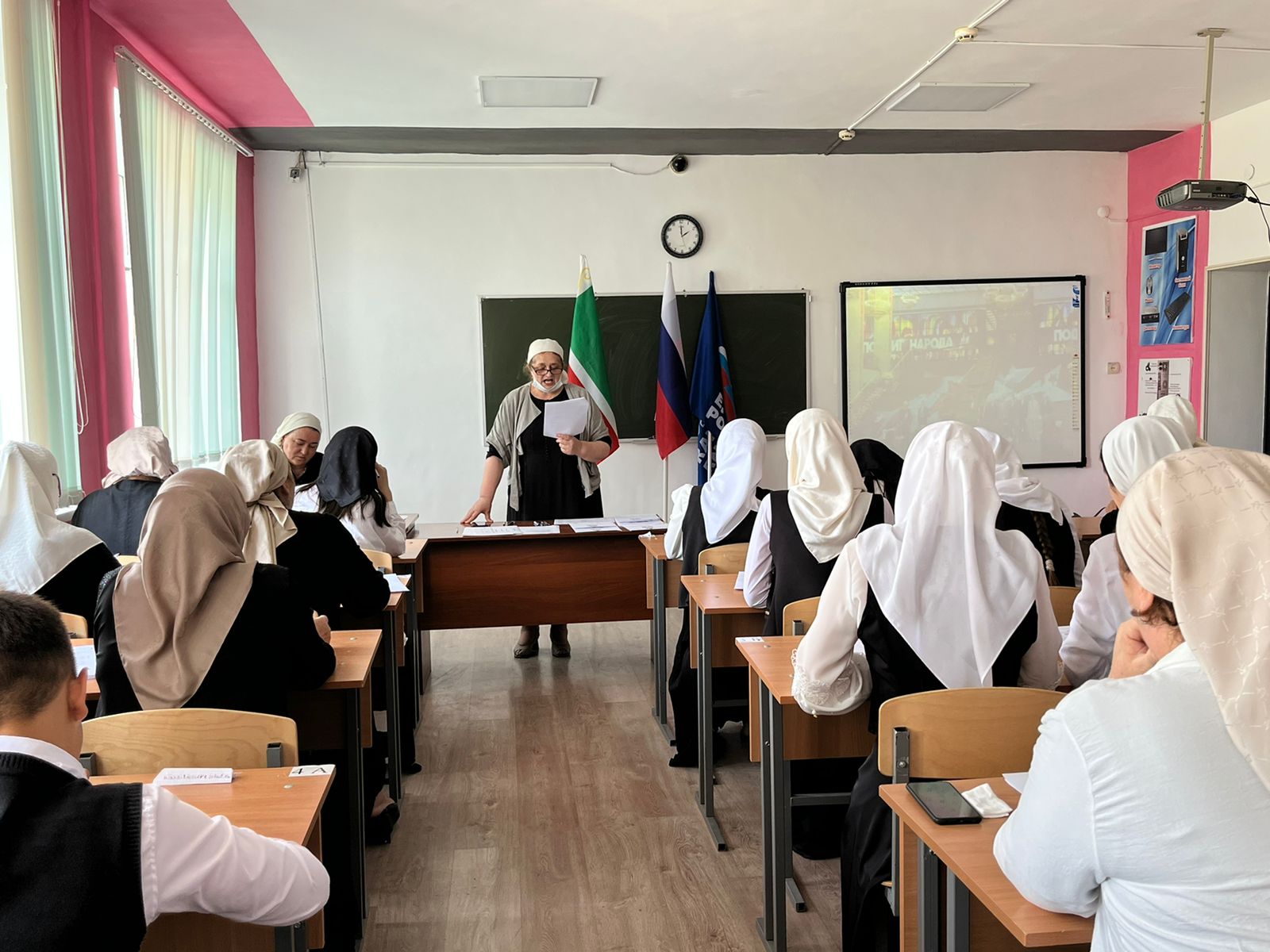 МБОУ «Веденская СОШ 2» являлась одной из площадок проведения «Диктанта Победы», которую посетили гости: зам. муфтия республики, депутат парламента Чеченской Республики Джафаров А-Х.Н. и исполнительный секретарь Веденского местного отделения партии Единая Россия Дадакаева З.Д.