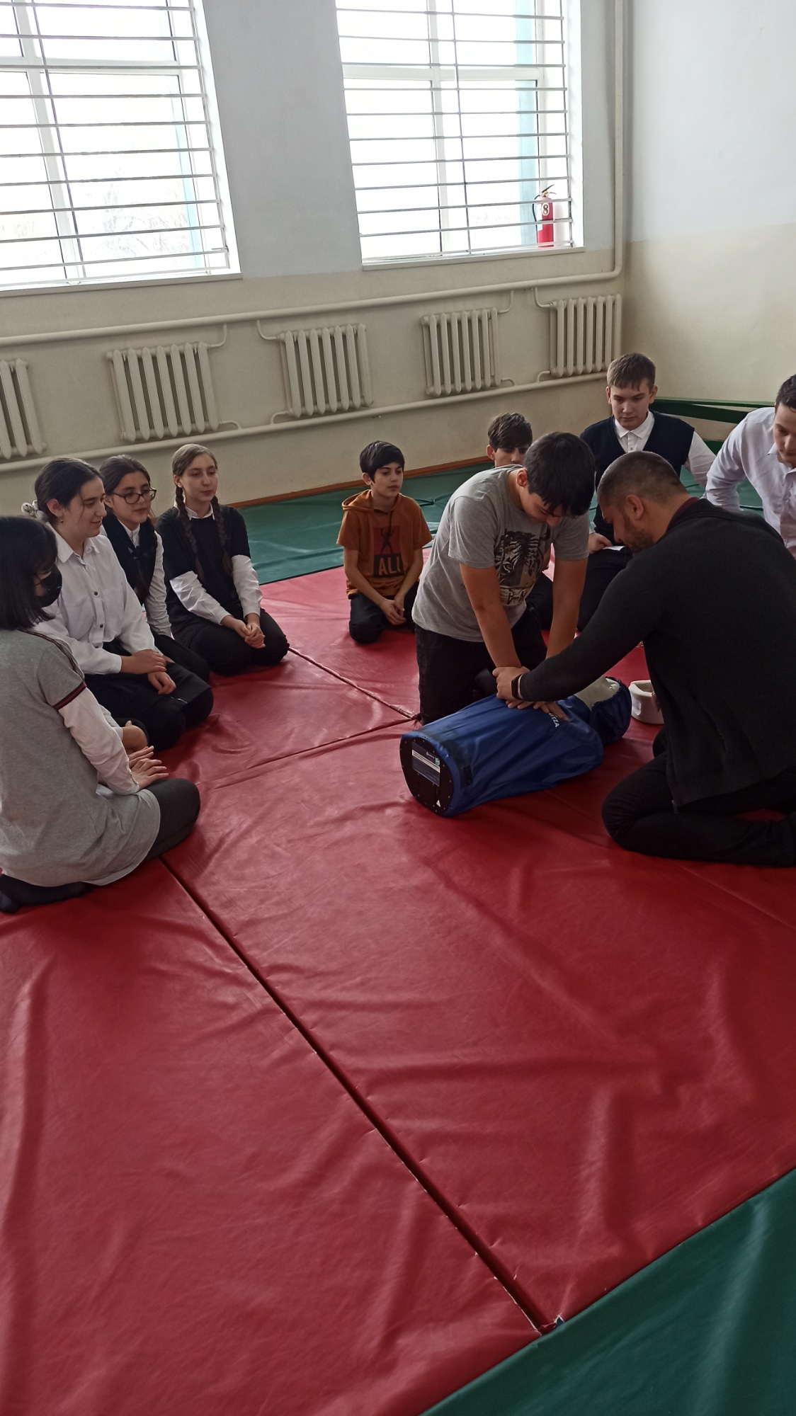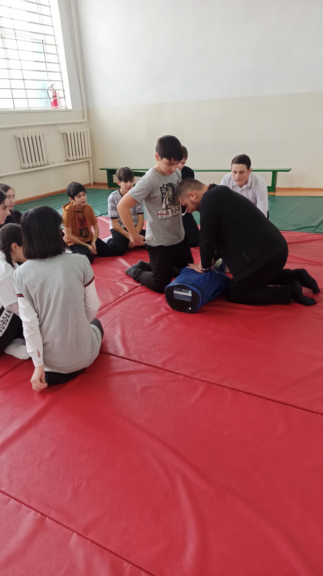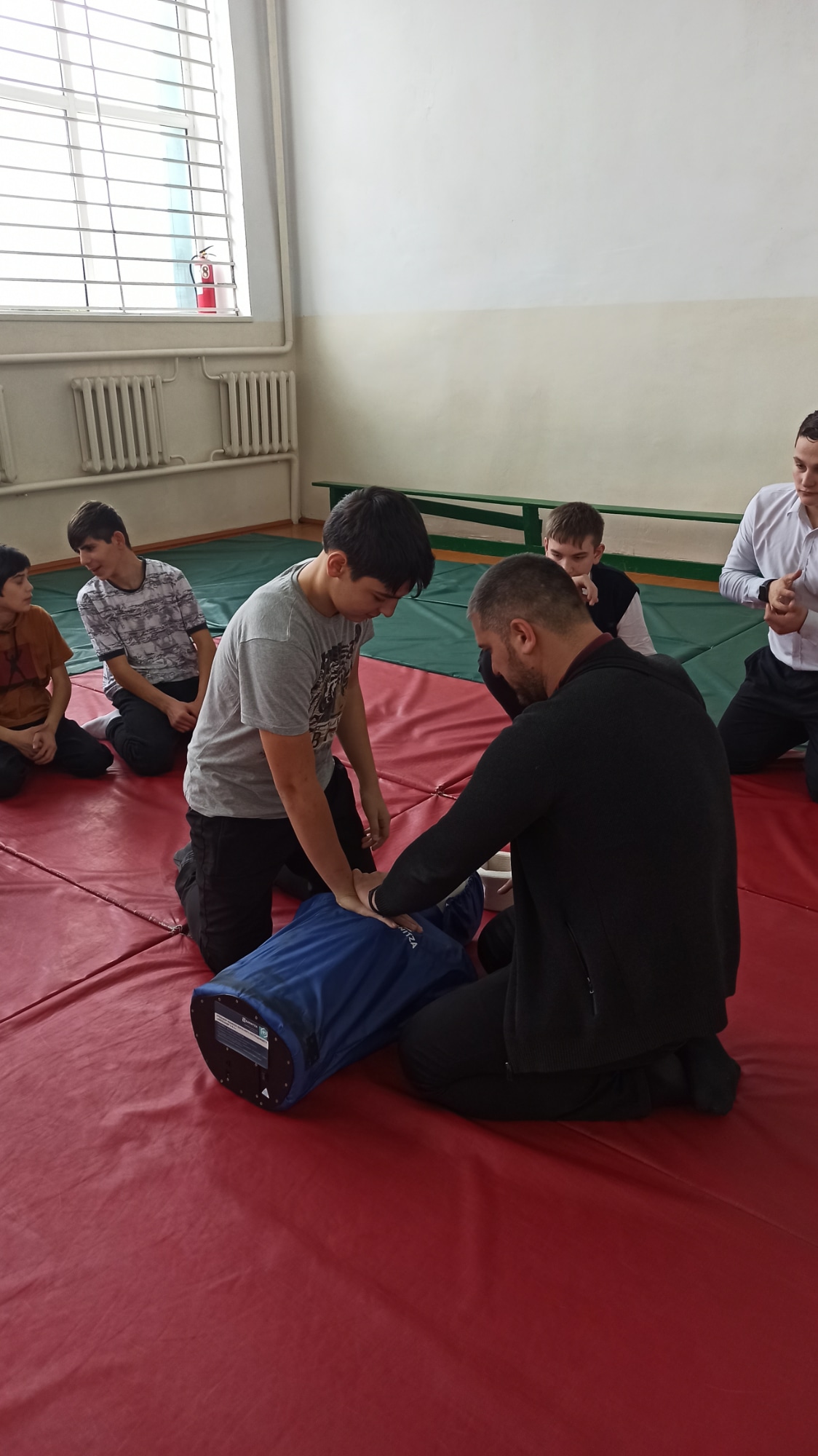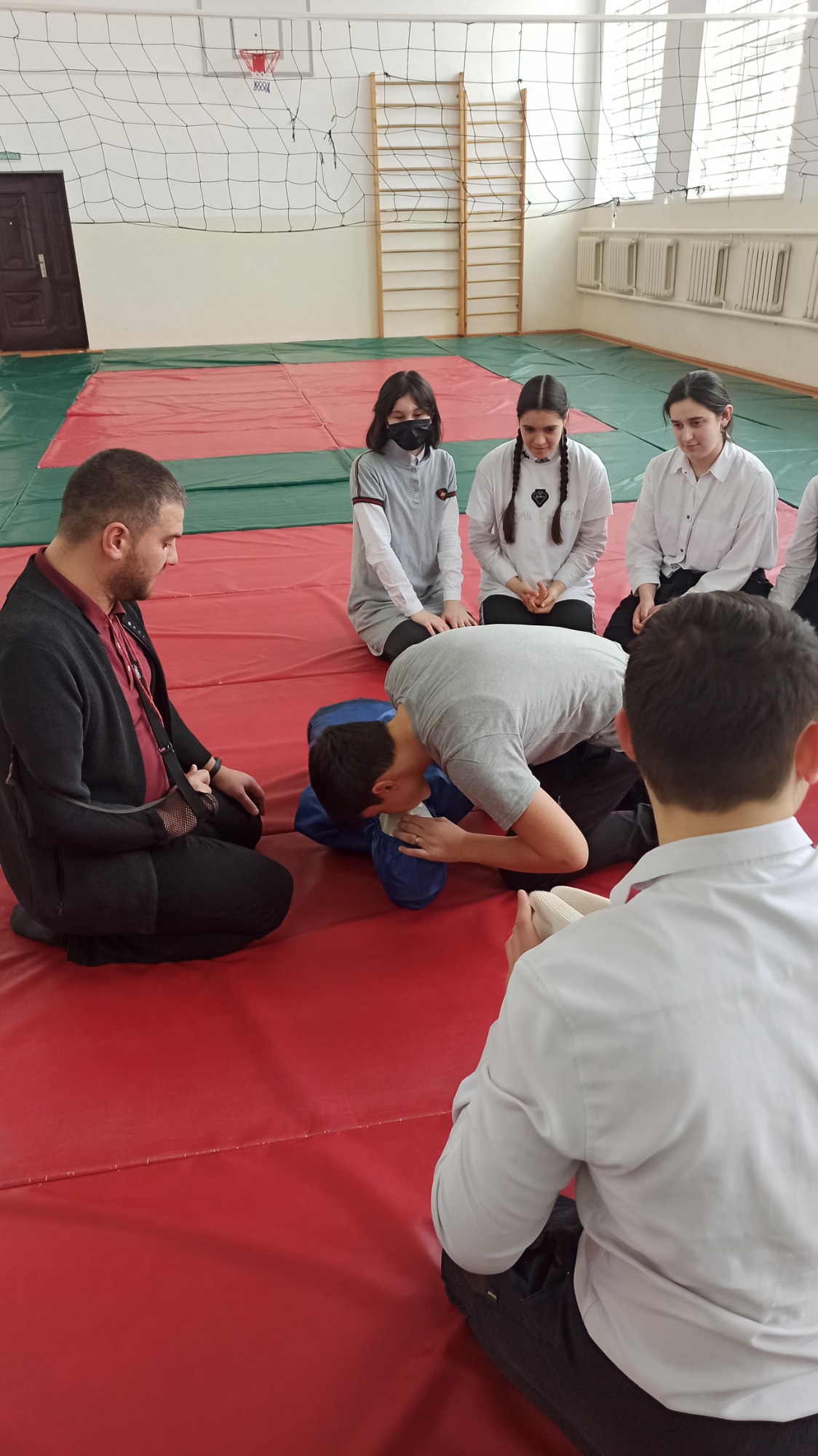 30.11.2022 г. в школе учителем физической культуры Усумовым М.Т. был проведен урок мастер класс на тему "Оказание первой медицинской помощи" с учащимися школы.