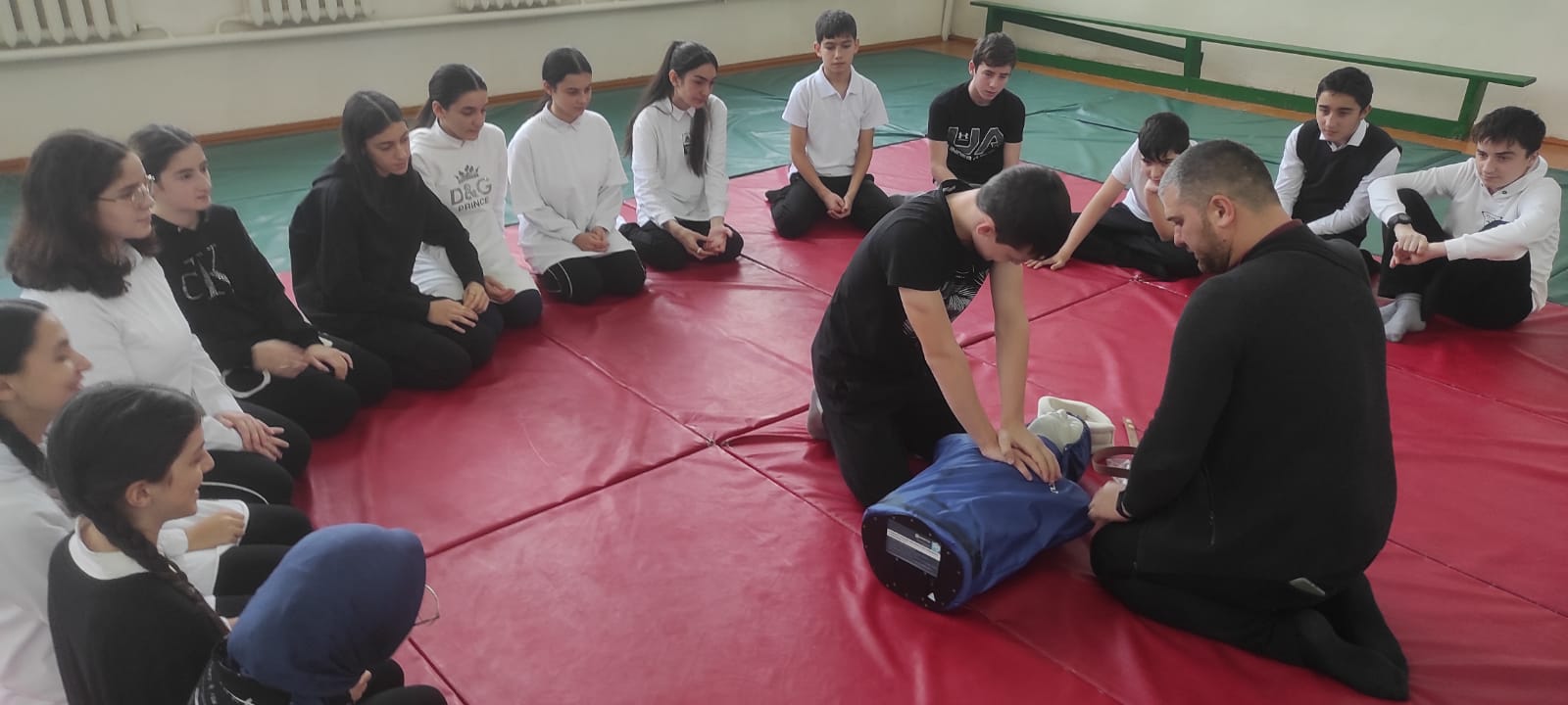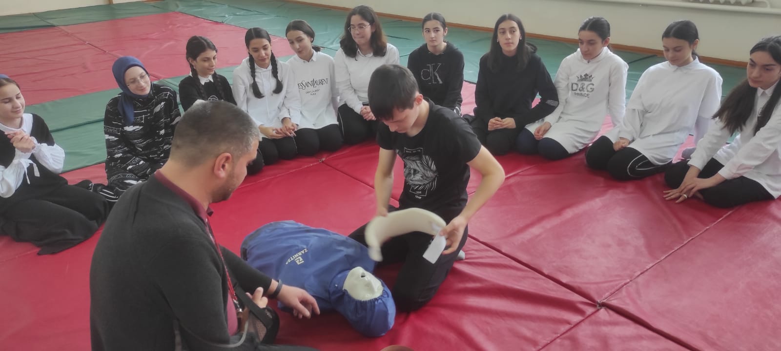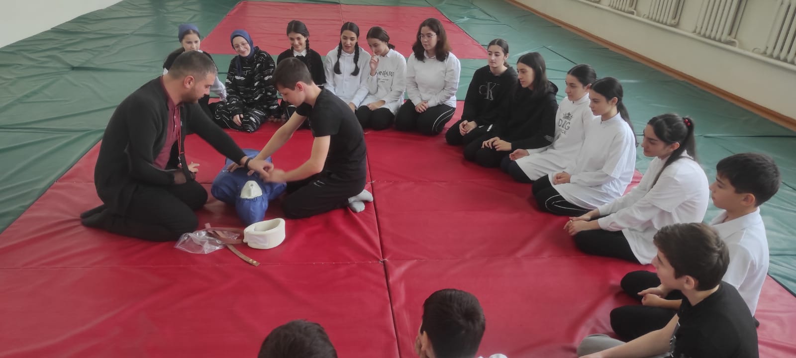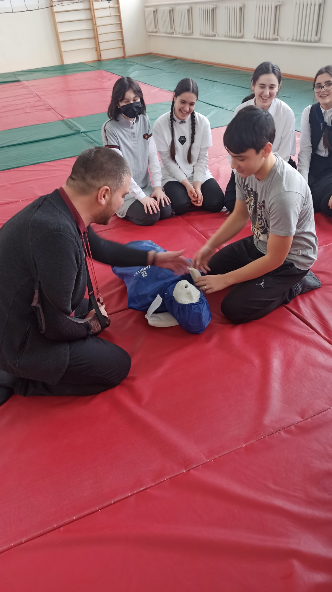 30.11.2022 г. в школе учителем физической культуры Усумовым М.Т. был проведен урок мастер класс на тему "Оказание первой медицинской помощи" с учащимися школы.