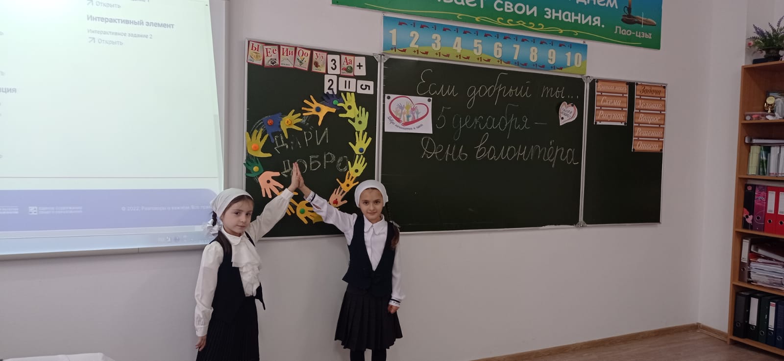 05.12.202205.12.2022Г. С целью познакомить учащихся с волонтёрской деятельностью в России, формировать нравственно-этические понятия, такие как доброта, отзывчивость, сострадание, формировать у учащихся мотивацию к волонтёрской деятельности, с учащимися МБОУ «Веденская СОШ №2» были проведены внеурочные занятия <<Разговоры о важном» по теме «Волонтеры России».