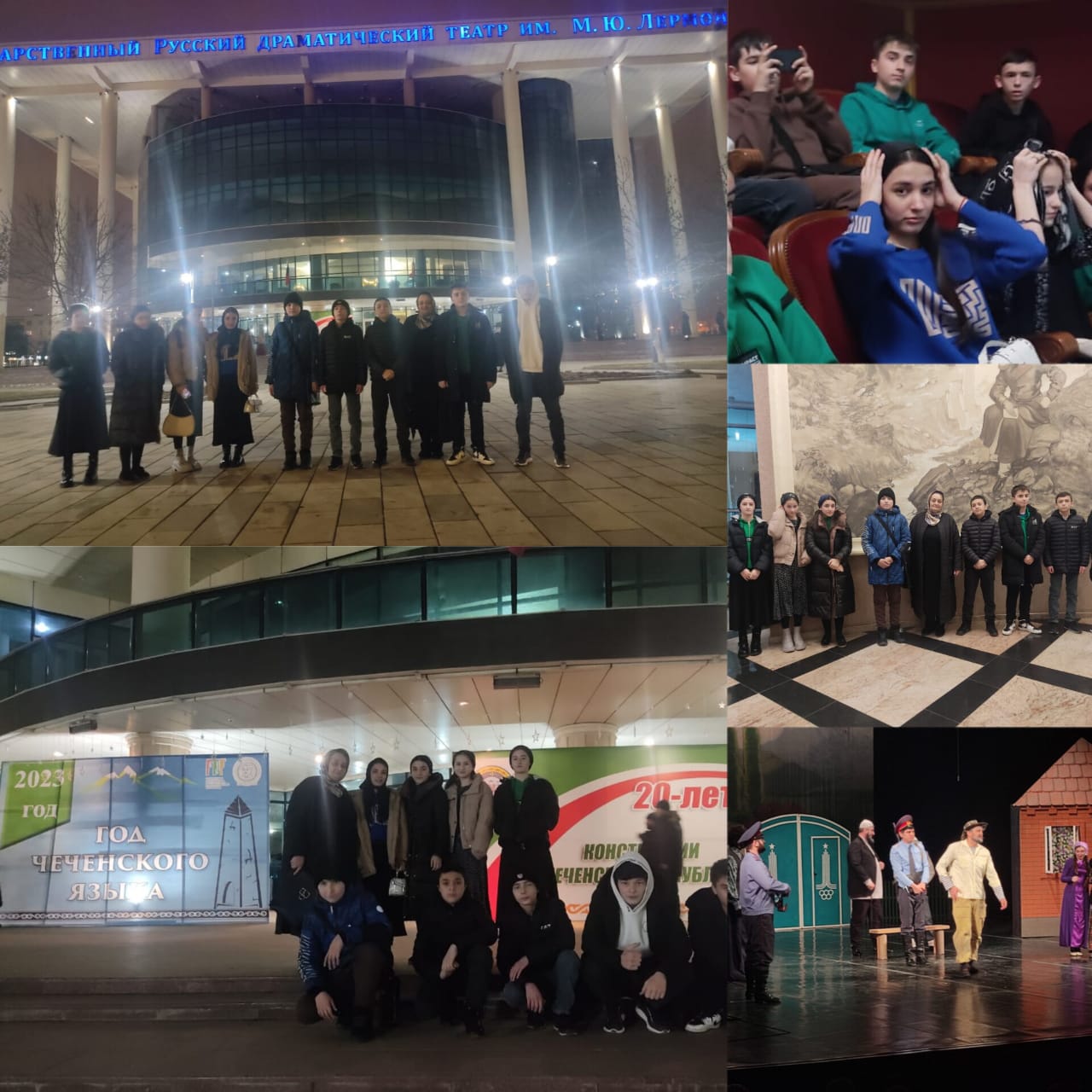 В рамках реализации национального проекта «Образование, рамках реализации проекта «Пушкинская карта» и рамках реализации регионального проекта «Год чеченского языка в Чеченской Республике» 20 января классные руководители Магомедова Роза Лемовна, Юсупова Амина Исаевна и учащиеся 8 а ,9 а классов посетили Государственный русский драматический театр имени Михаила Юрьевича Лермонтова на спектакль «1аьржа к1ант» поставленном по пьесе Асахмата Айларова.