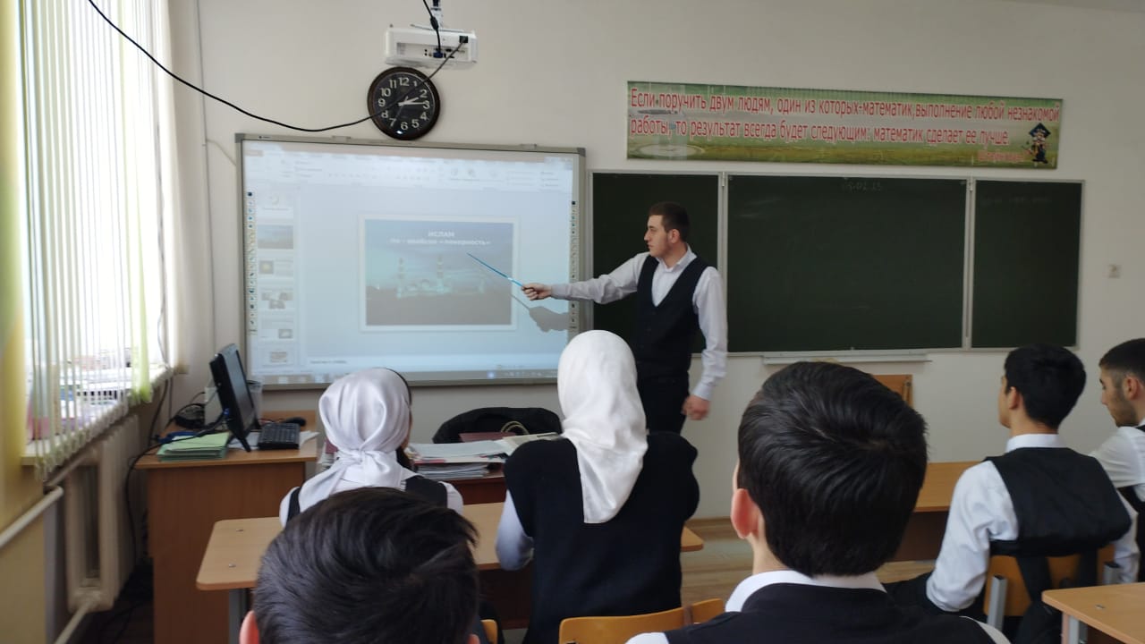 08.02.202308.02.2023 г. классный руководитель Халилаева Э.Ш. в 10 классе провела классный час на тему: "Ислам-религия мира и добра", с целью сформировать у обучающихся представление об основных религиях мира, показать сходства, различия и единство религий. Ислам по арабски "покорность"самая молодая религия, возник в Аравии. Коран главная священная книга мусульман-это фундамент, на котором построена религия. Ислам учит жить в мире и согласии, совершать благоразумные поступки, думать о своем предначертании в жизни. Сунна обычай, жизненный путь по которому следует идти, путь пророка Мухаммада как пример для всех мусульман.