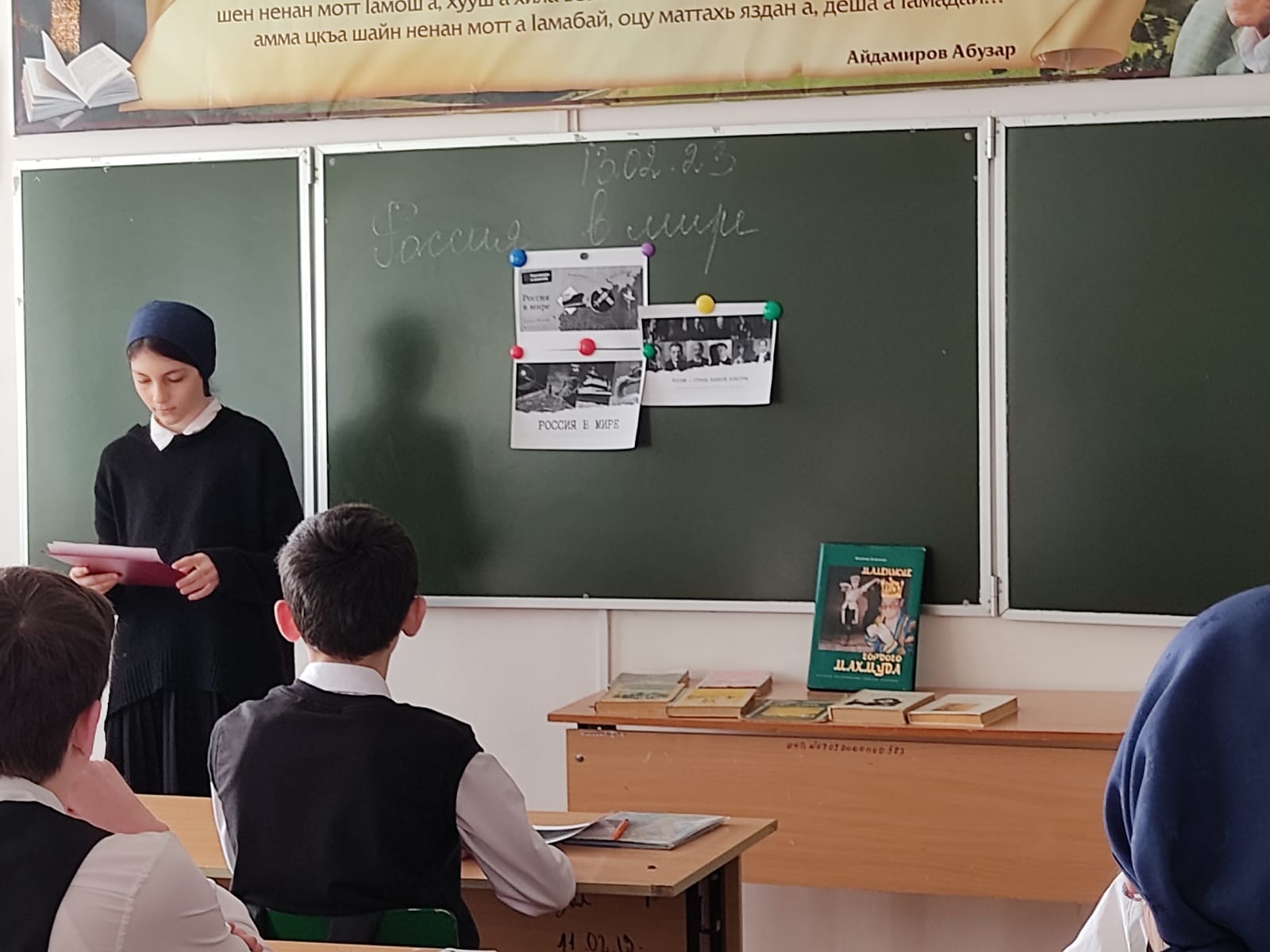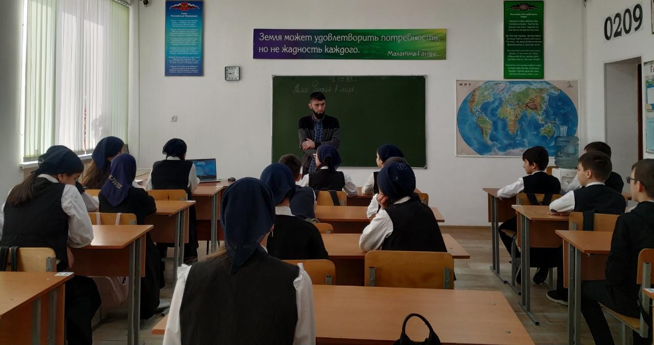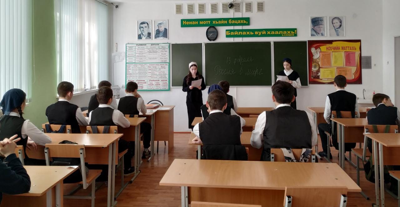13.02.202313.02.2023 года для школьников МБОУ «Веденская СОШ №2» традиционно началось с торжественной линейки, церемония поднятия Флагов и исполнения Гимнов Российской Федерации и Чеченской Республики. В рамках реализации федерального проекта «Патриотическое воспитание», в рамках реализации национального проекта «Образование» были проведены внеурочные занятия «Разговоры о важном» на тему: «Россия в мире».