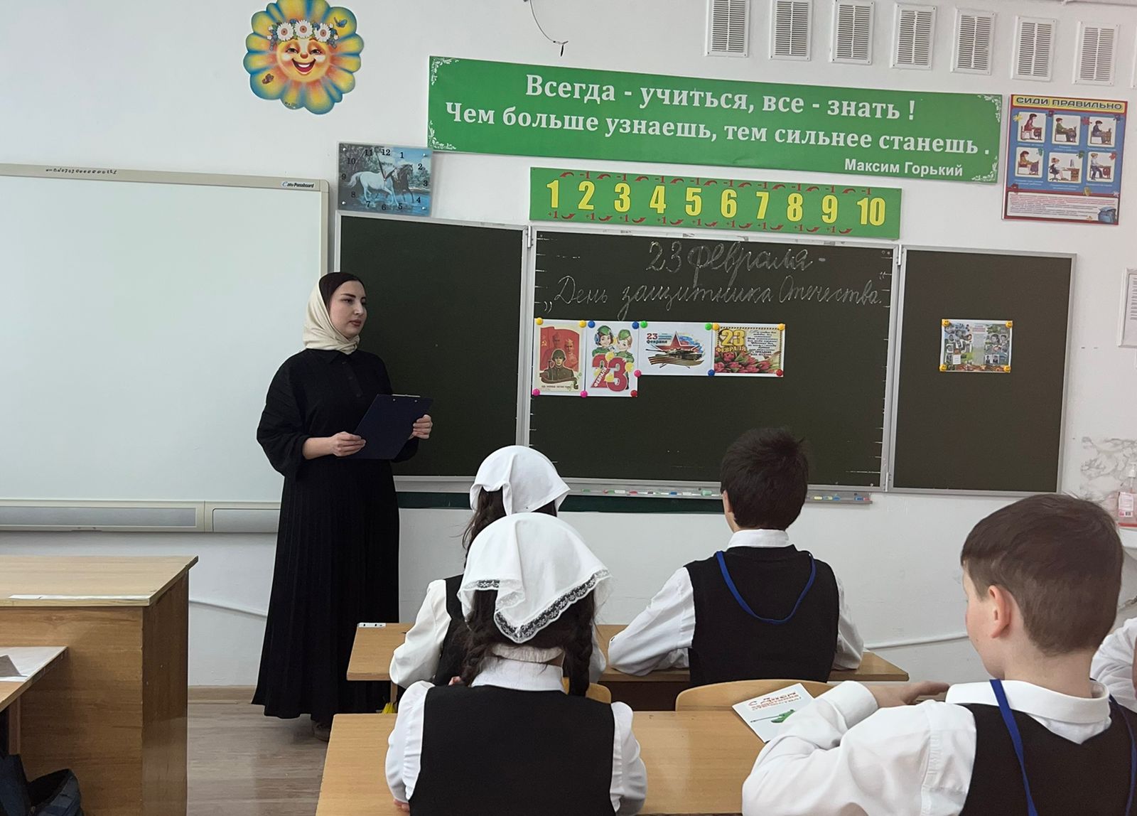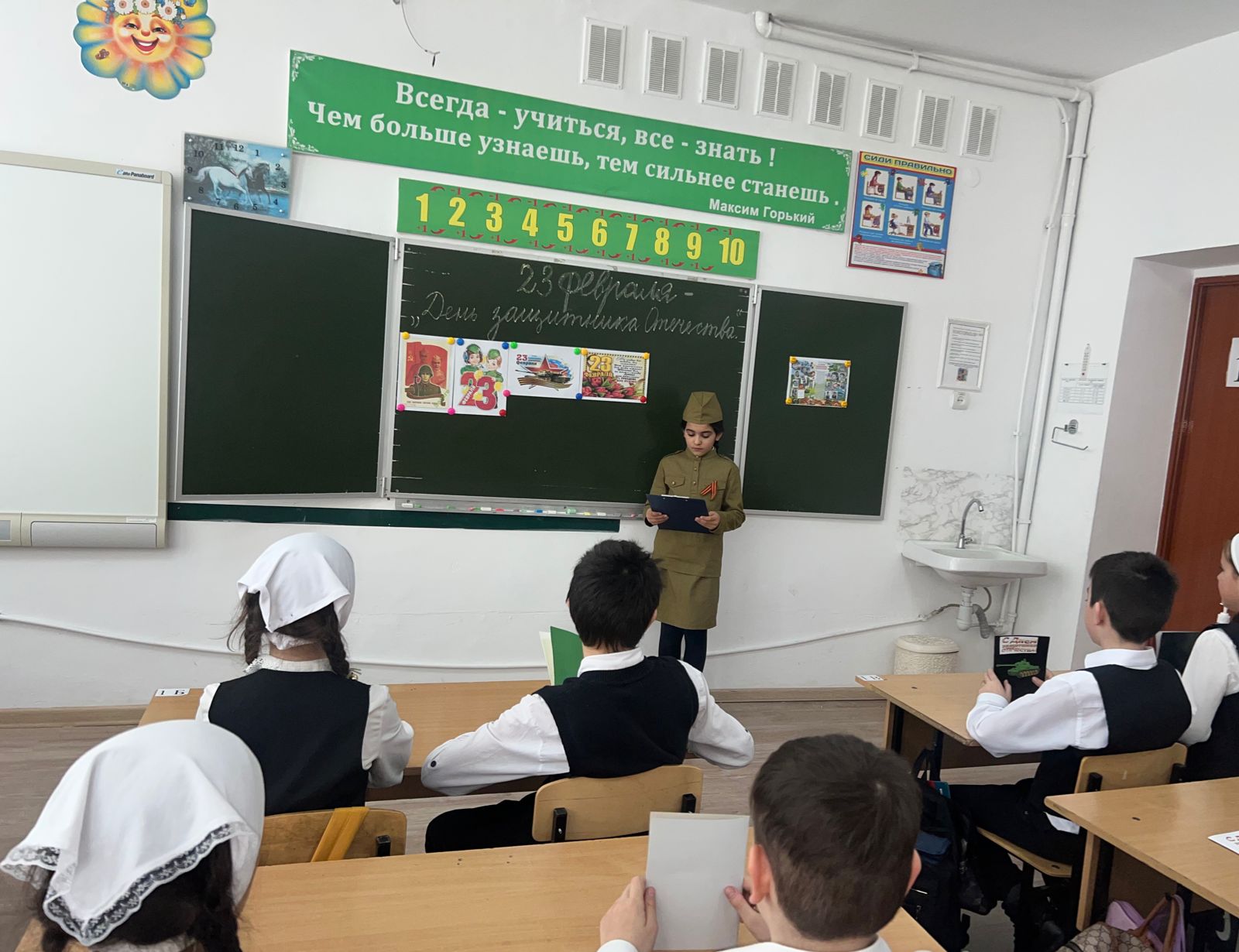 16.02.202316.02.2023 г. классный руководитель 4 класса Таймасханова З.А. провела классный час на тему: «23 февраля-День защитника Отечества».