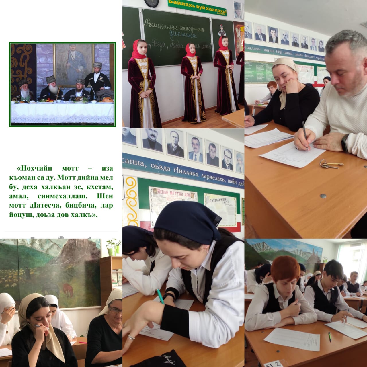 21.02.2023В рамках проведения мероприятий, посвященных Году чеченского языка, с целью повышения интереса к изучению родного языка и литературы, истории и этнографии Чеченской Республики, 21.02.2023г. в школе прошел Региональный этнографический диктант «Беза, бовза ненан мотт».