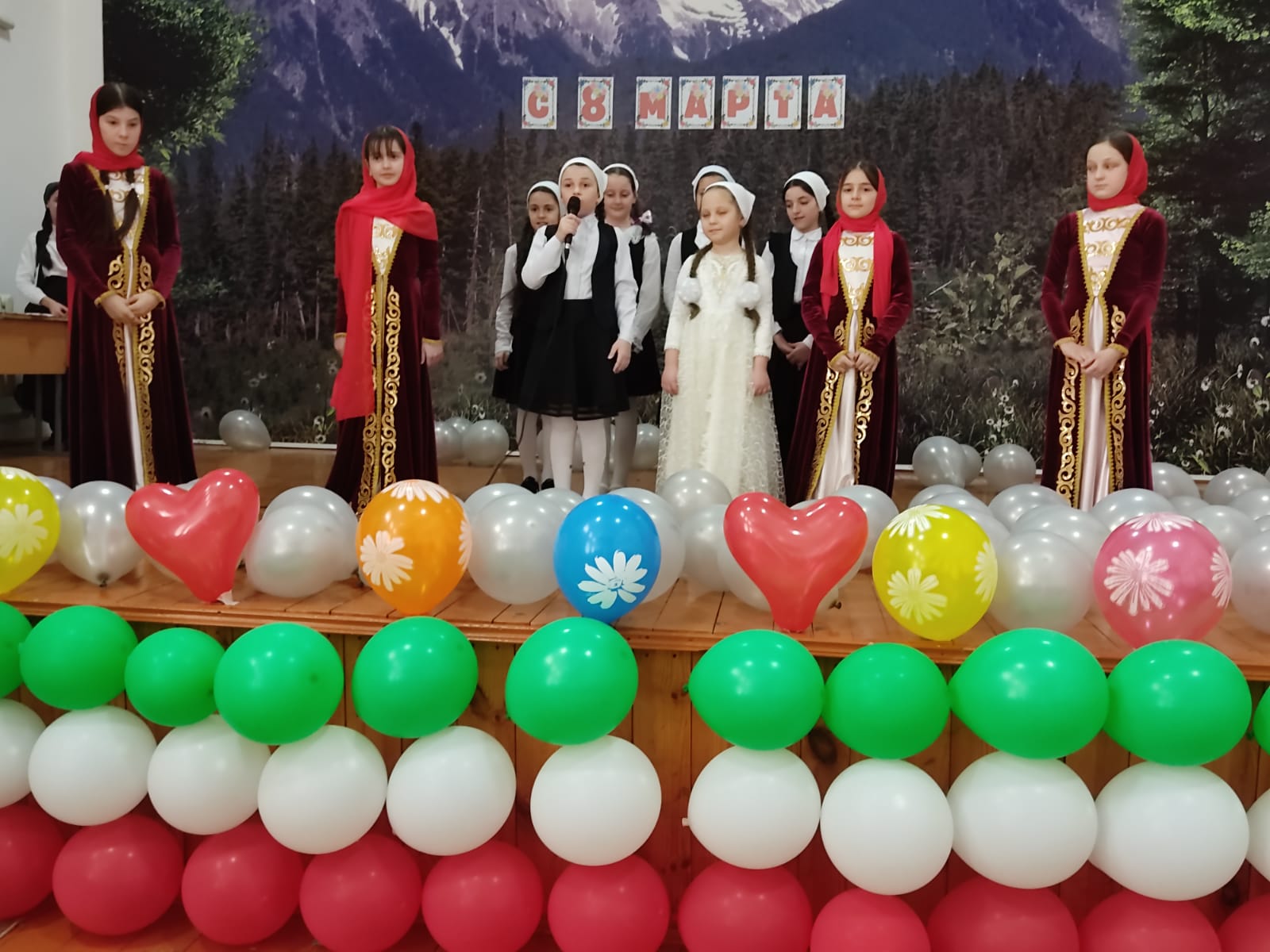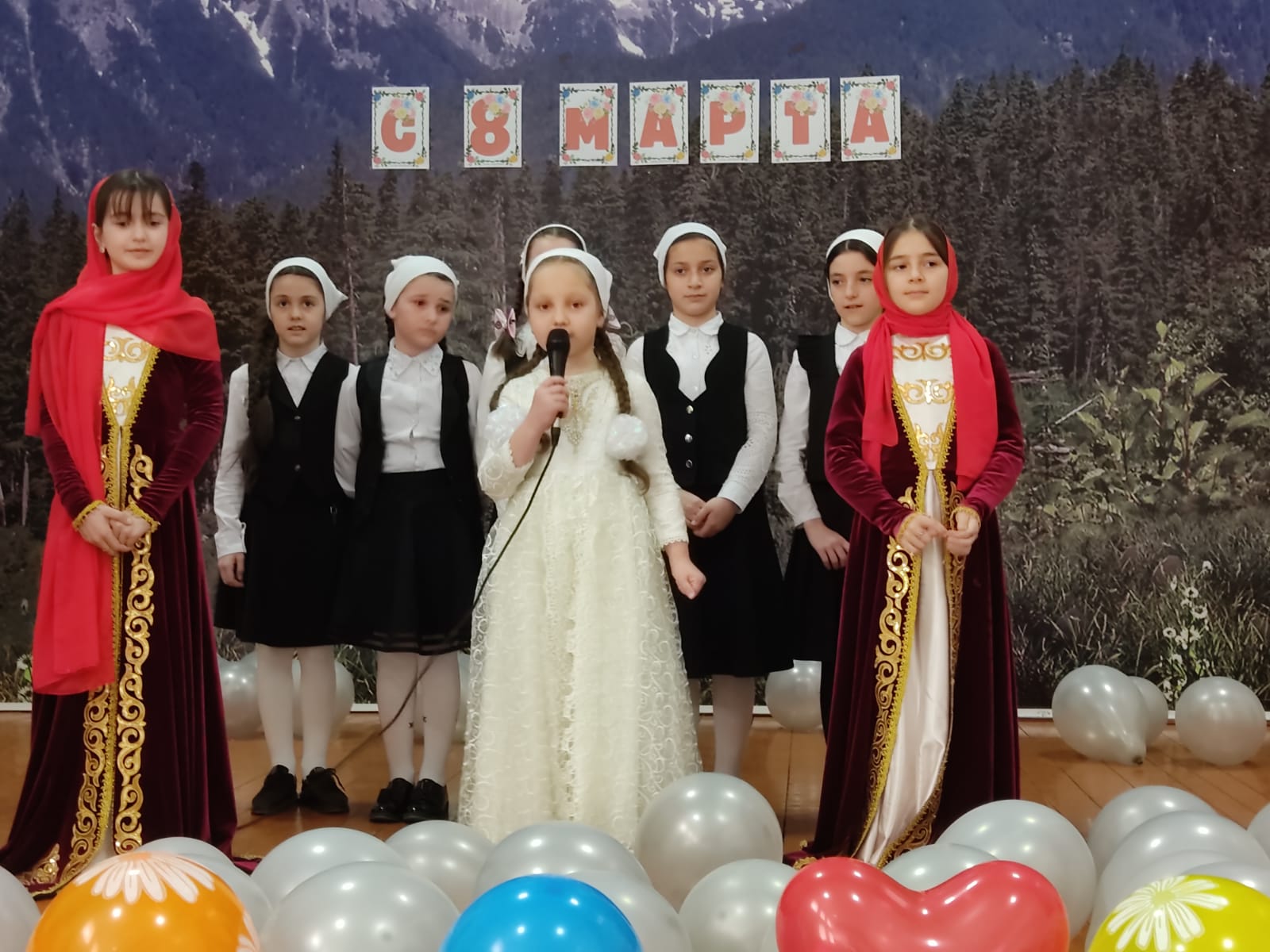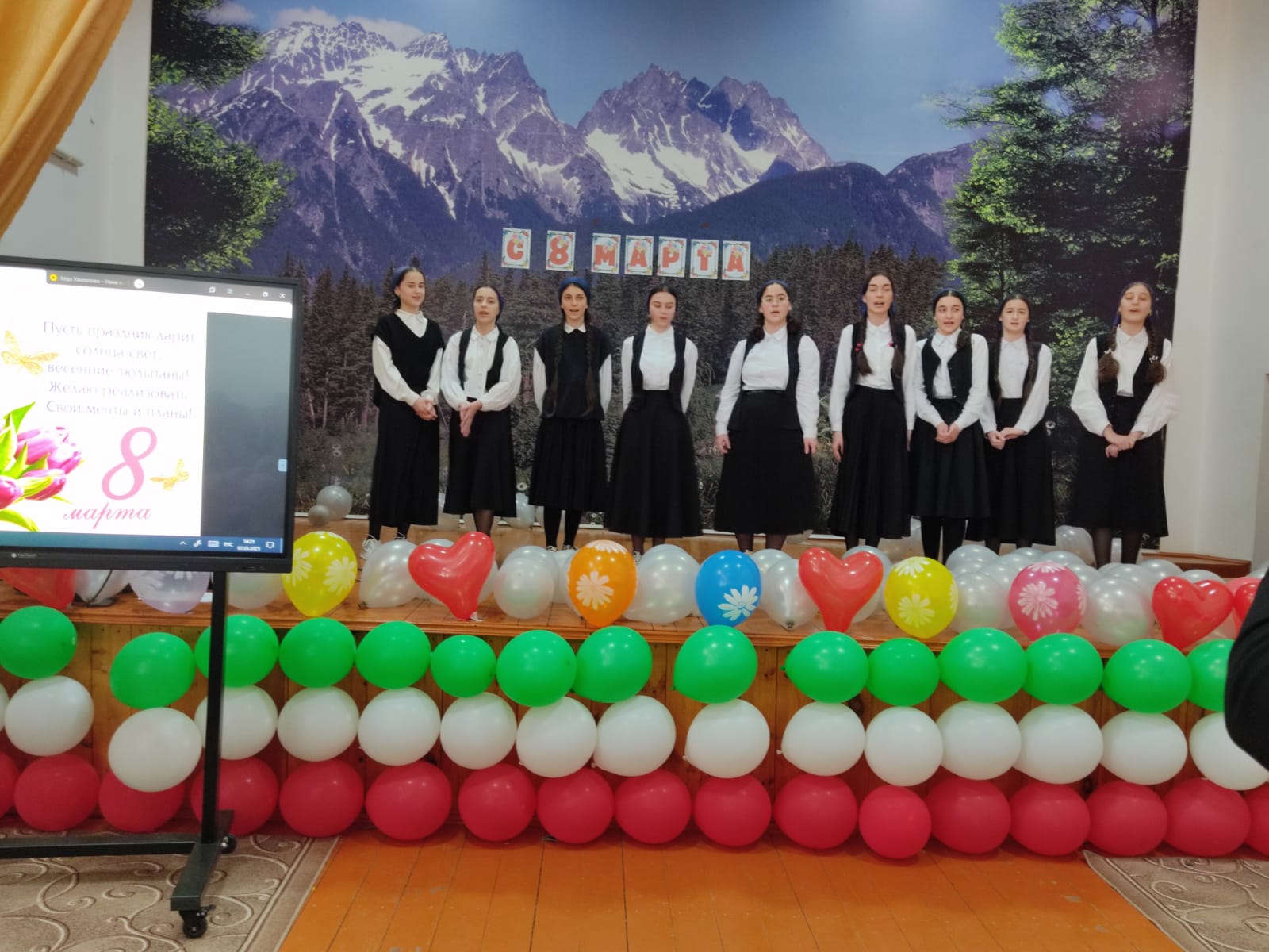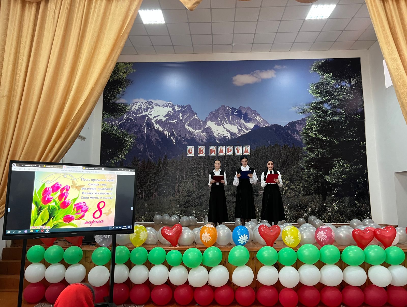7 марта 2023 года прошел традиционный праздничный концерт, посвященный празднику весны Международному женскому дню 8 Марта на тему: «И хорошее настроение не покинет больше вас!». Открыли праздничный концерт ученики 11 класса Гайрбеков Исмаил и Месирбиев Сулиман, которые стали ведущими. Исмаил и Сулиман поздравили прекрасную половину школы с первым весенним праздником, пожелали здоровья и весеннего настроения.