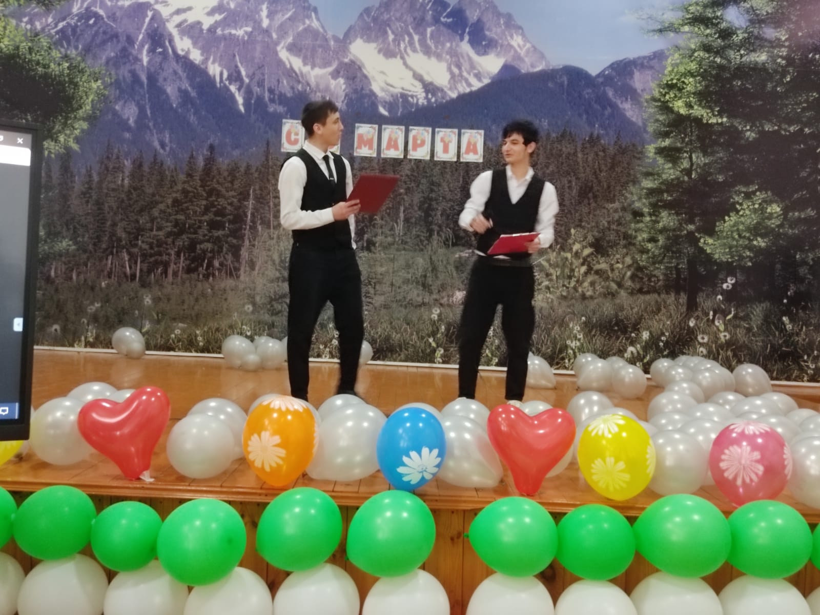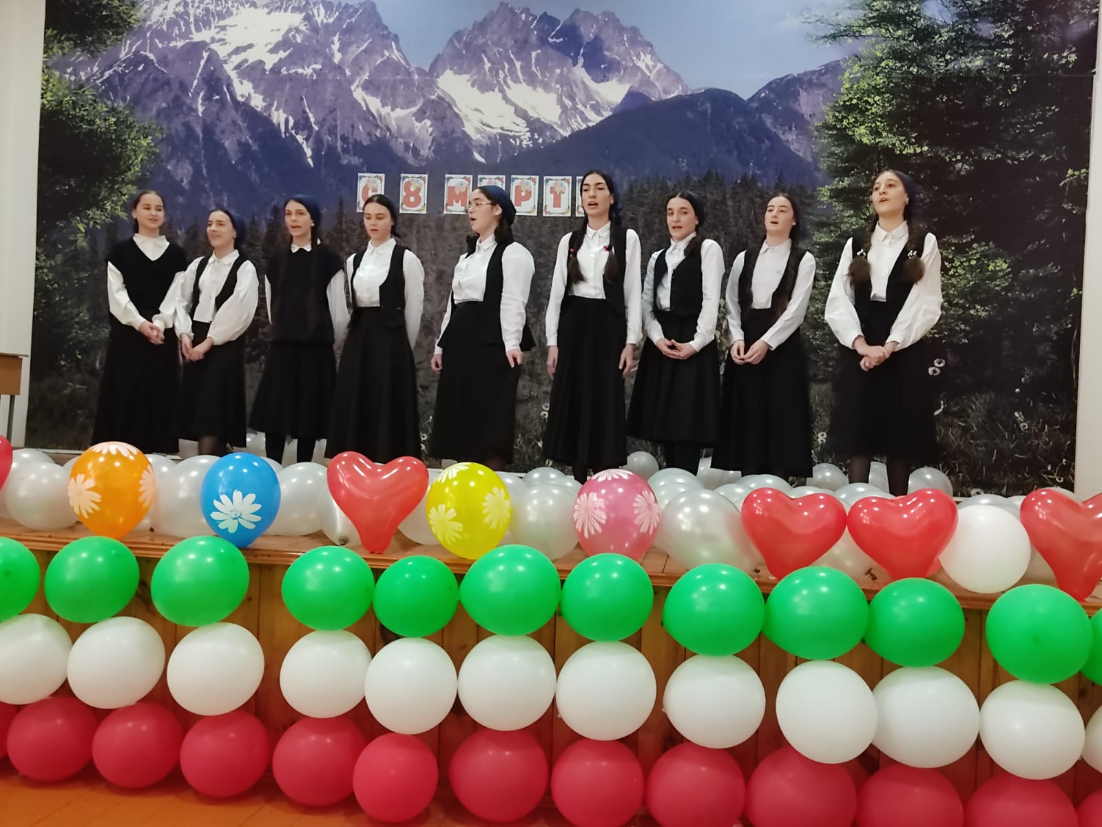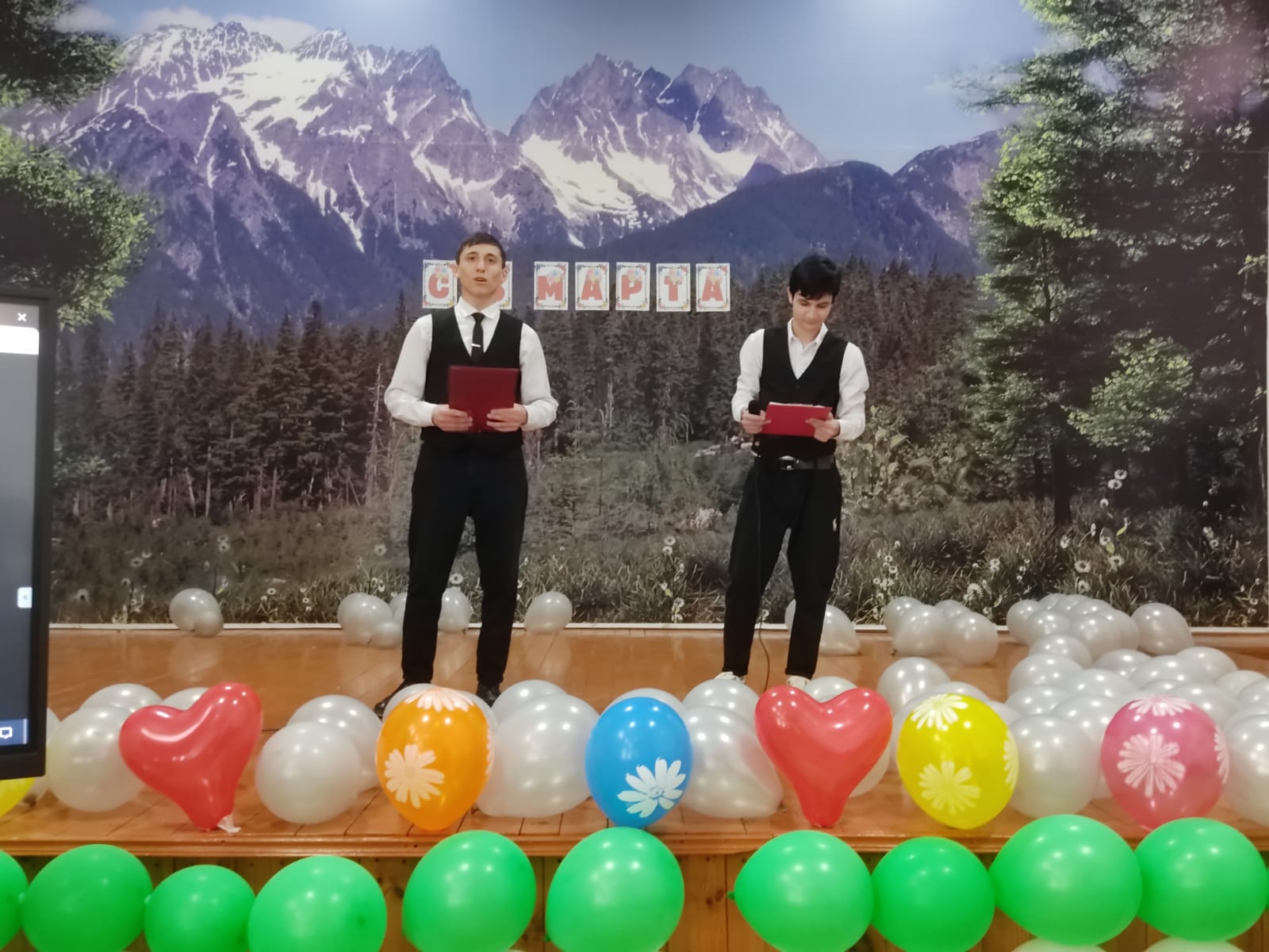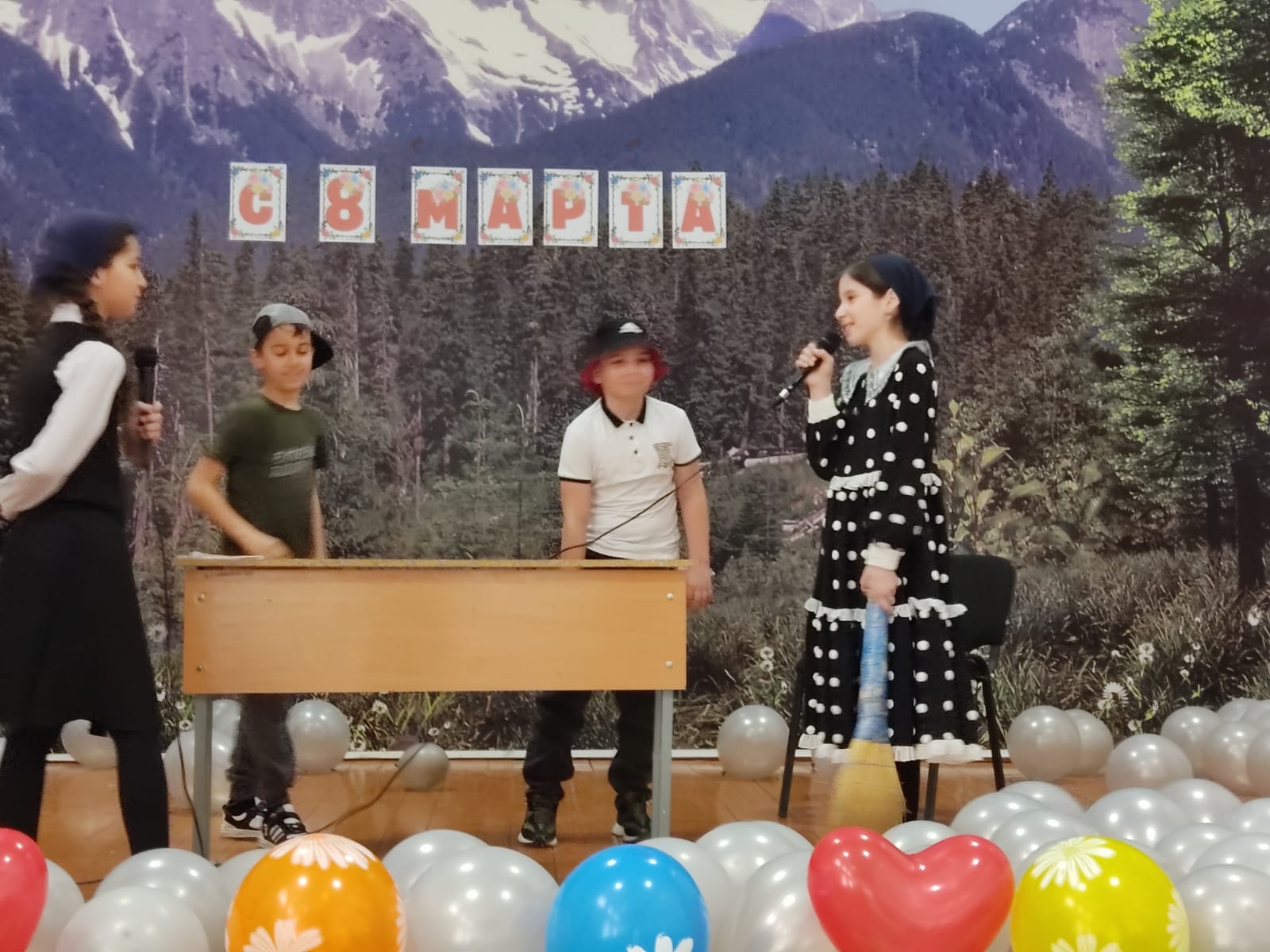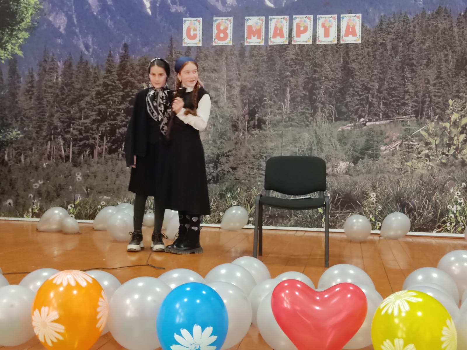 7 марта 2023 года прошел традиционный праздничный концерт, посвященный празднику весны Международному женскому дню 8 Марта на тему: «И хорошее настроение не покинет больше вас!». Открыли праздничный концерт ученики 11 класса Гайрбеков Исмаил и Месирбиев Сулиман, которые стали ведущими. Исмаил и Сулиман поздравили прекрасную половину школы с первым весенним праздником, пожелали здоровья и весеннего настроения.