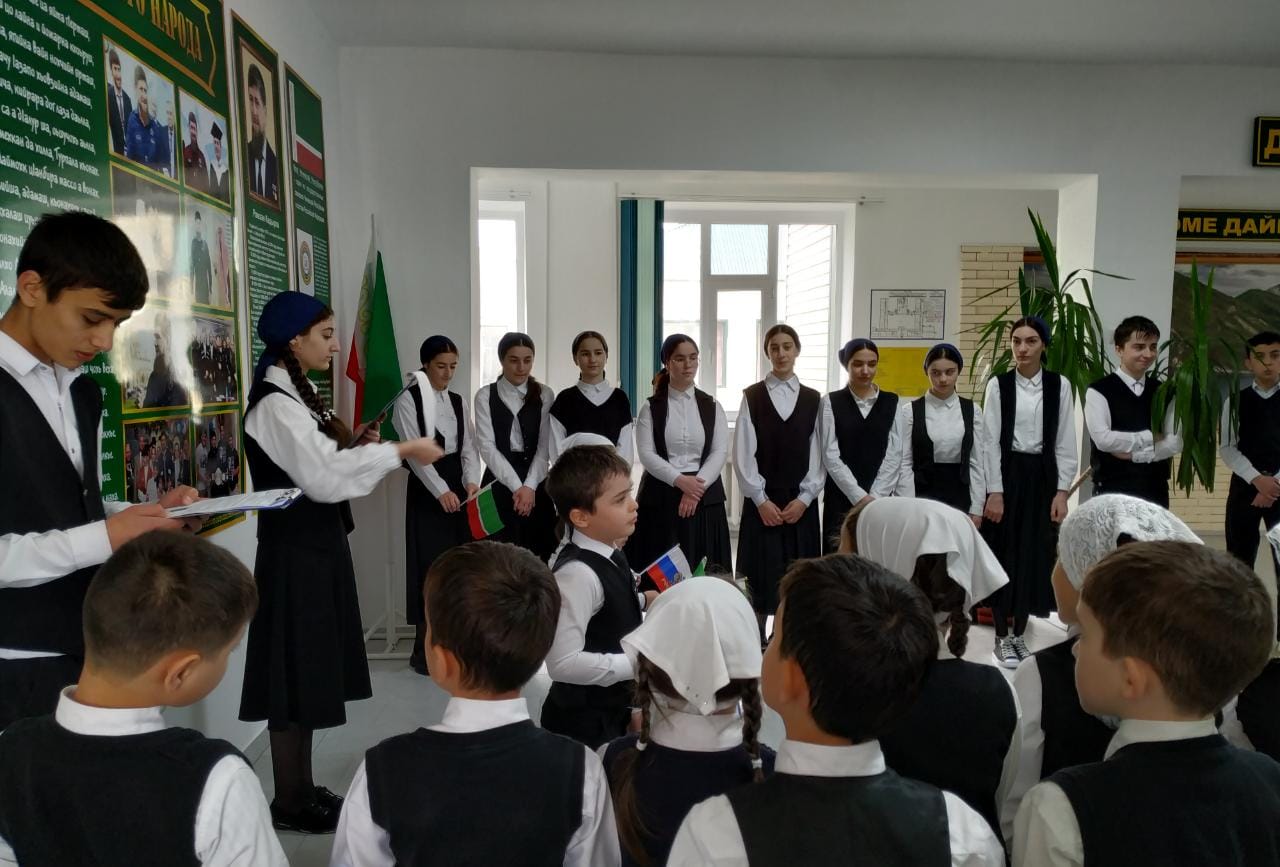 13 апреля 2023 года была проведена тематическая торжественная линейка среди учащихся, посвященная Дню мира в Чеченской Республике. Заместитель директора по воспитательной работе Магомедова Роза Лемовна выступила перед учащимися с поздравительной речью, где она сказала: «Этот день один из самых замечательных праздников для чеченского народа и отмечается он в нашей республике с 16 апреля 2009 года после того, как Президент Чеченской Республики Рамзан Ахматович Кадыров – издал указ об отмене режима контртеррористической операции на территории Чеченской Республики».