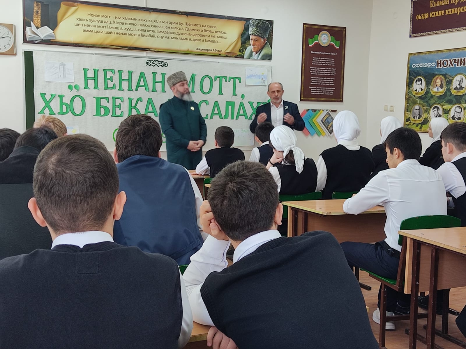 24 апреля 2023 года в преддверии праздника Чеченского языка посетили гости МБОУ «Веденская СОШ №2» и провели беседу с учащимися 10 и 11 классов депутат парламента Чеченской Республики Ханбиев Магомед Ильманович, заместитель муфтията и депутат парламента Чеченской Республики Джафаров Арби Нурдинович и исполнительный секретарь Веденского местного отделения партии Единая Россия Дадакаева Зухра Джунаидовна.