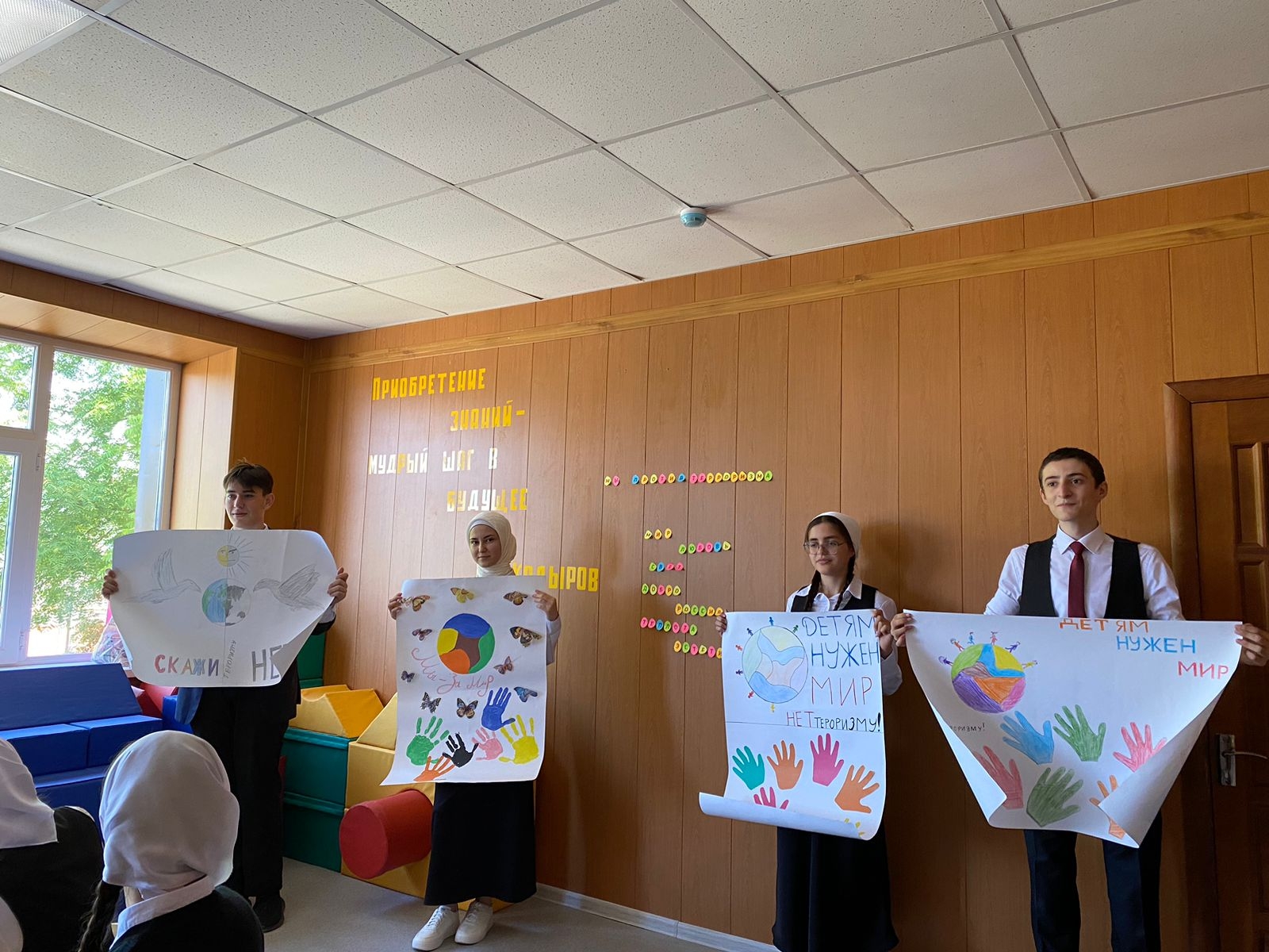 04.09.23 на базе школы советник директора провел тренинг «Пойми себя - пойми другого» приуроченный ко Дню солидарности в борьбе с терроризмом, в ходе которого десятиклассники узнали о способах лучше понимать друг друга. Так же многому другие классом приняли участие в сборе плакатов на тему «Мы против терроризма». Была проведена беседа о терроризме, о типах терроризма. Было ознакомление обучающихся с основными правилами поведения в условиях теракта и захвата в заложники (памятка каждой семье). Старшеклассники по собственной инициативе провели викторину «Что я знаю о терроризме?».