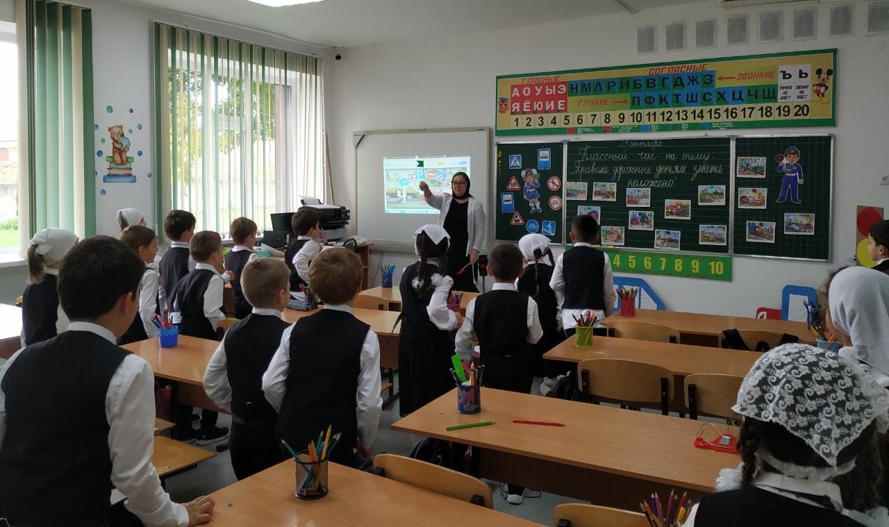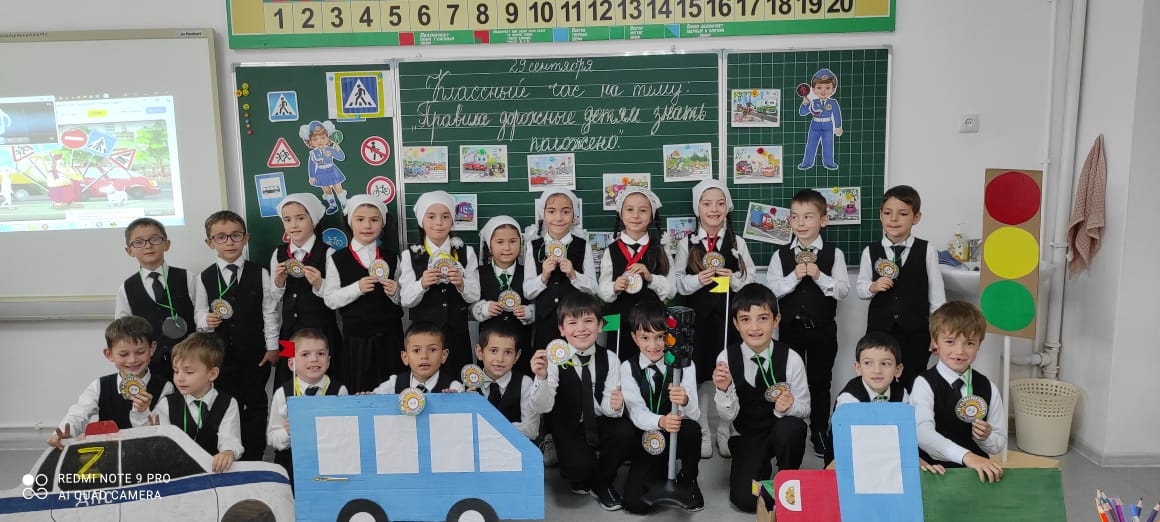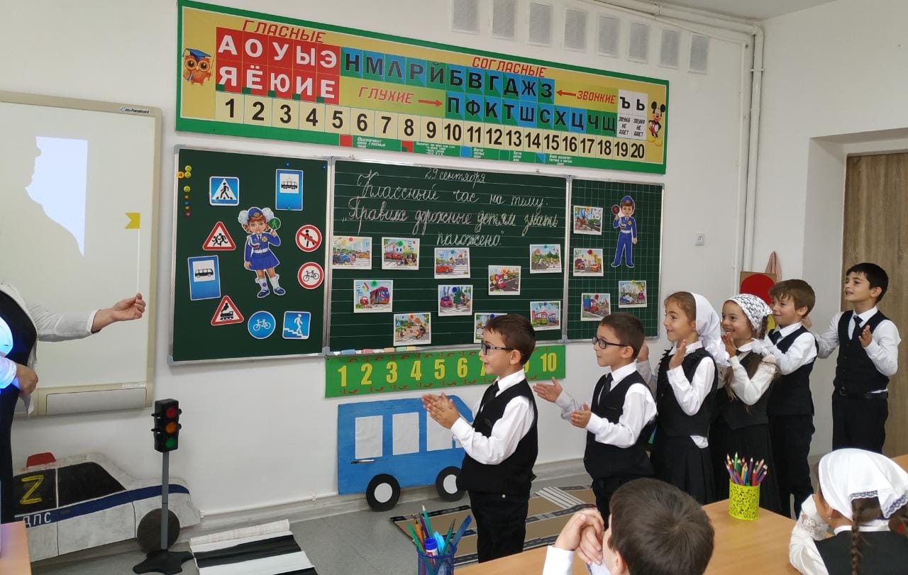 29.09.2023г. учитель начальных классов Гучигова Яха Тасовна провела в 1 А классе классный час на тему:Правила дорожного движения".