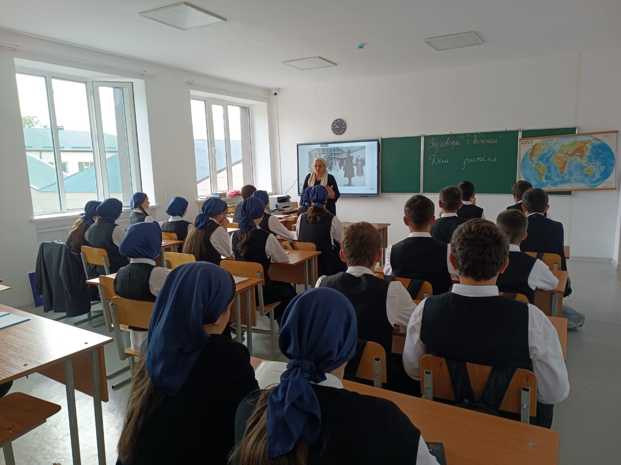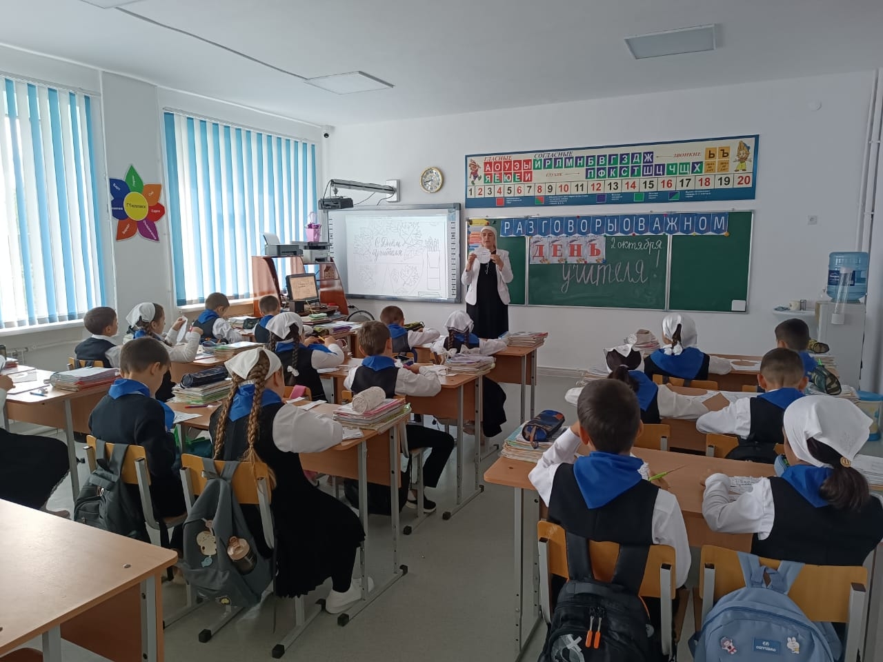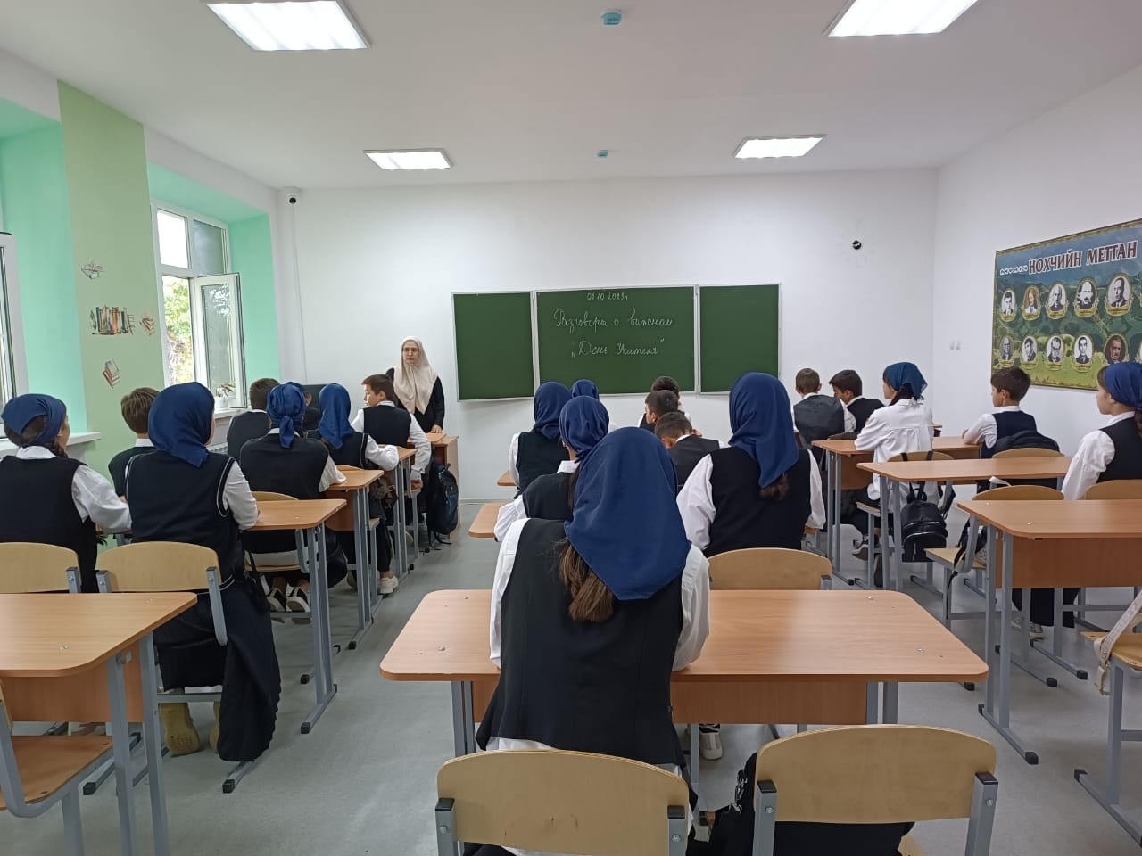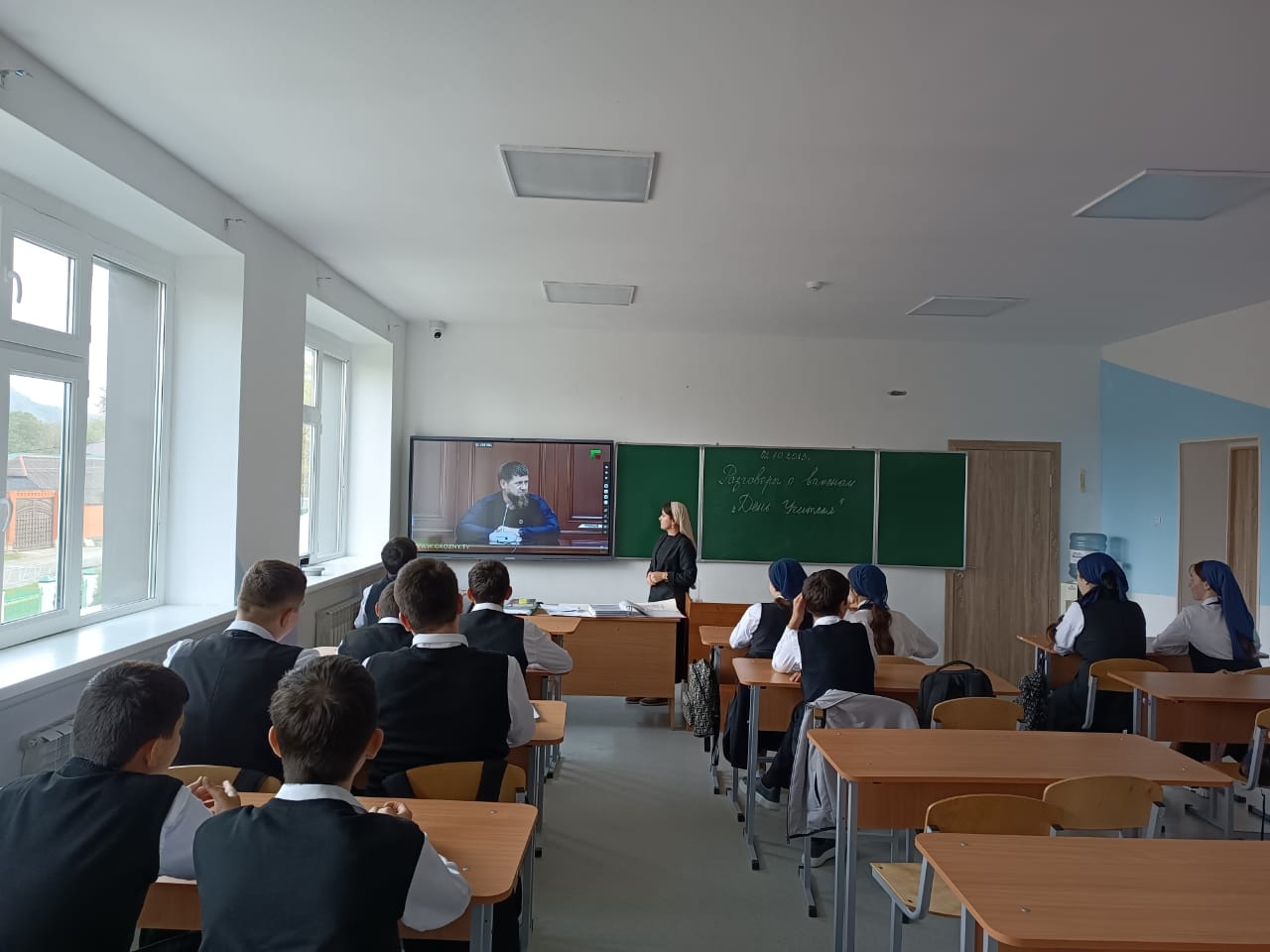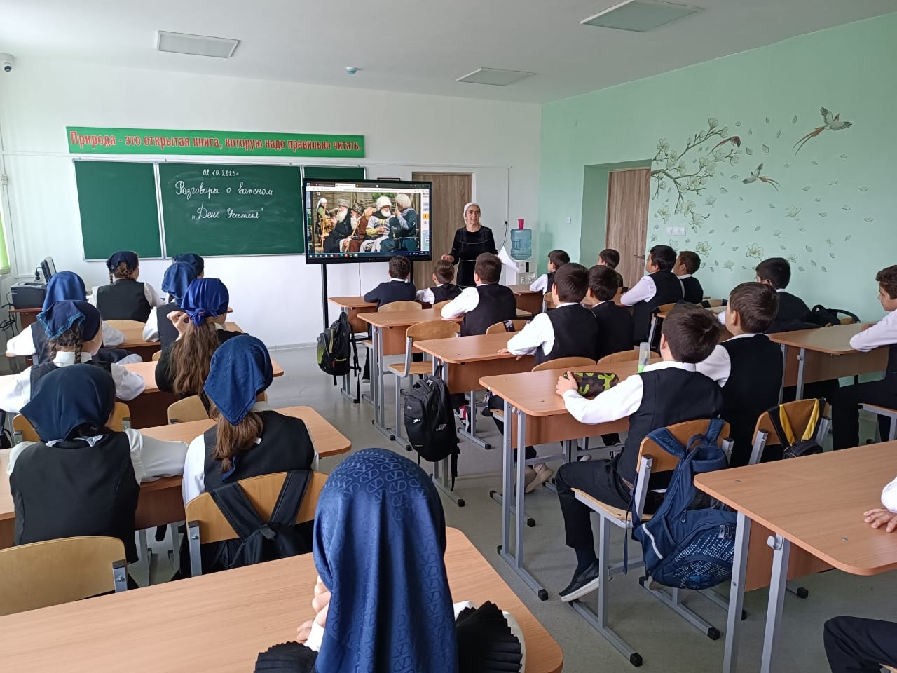 02.10.2023г. в МБОУ "Веденская СОШ № 2" классные руководители с 1-11 классы провели занятие разговоры о важном на тему: "День учителя".