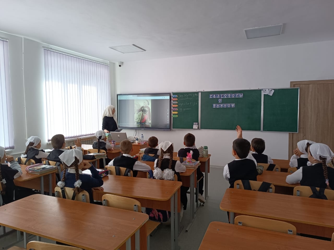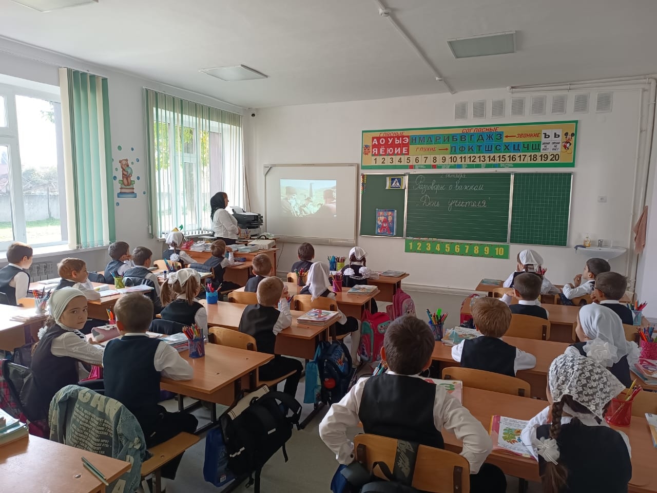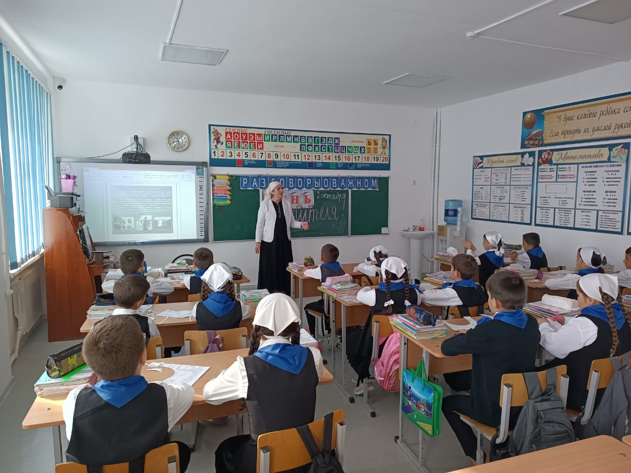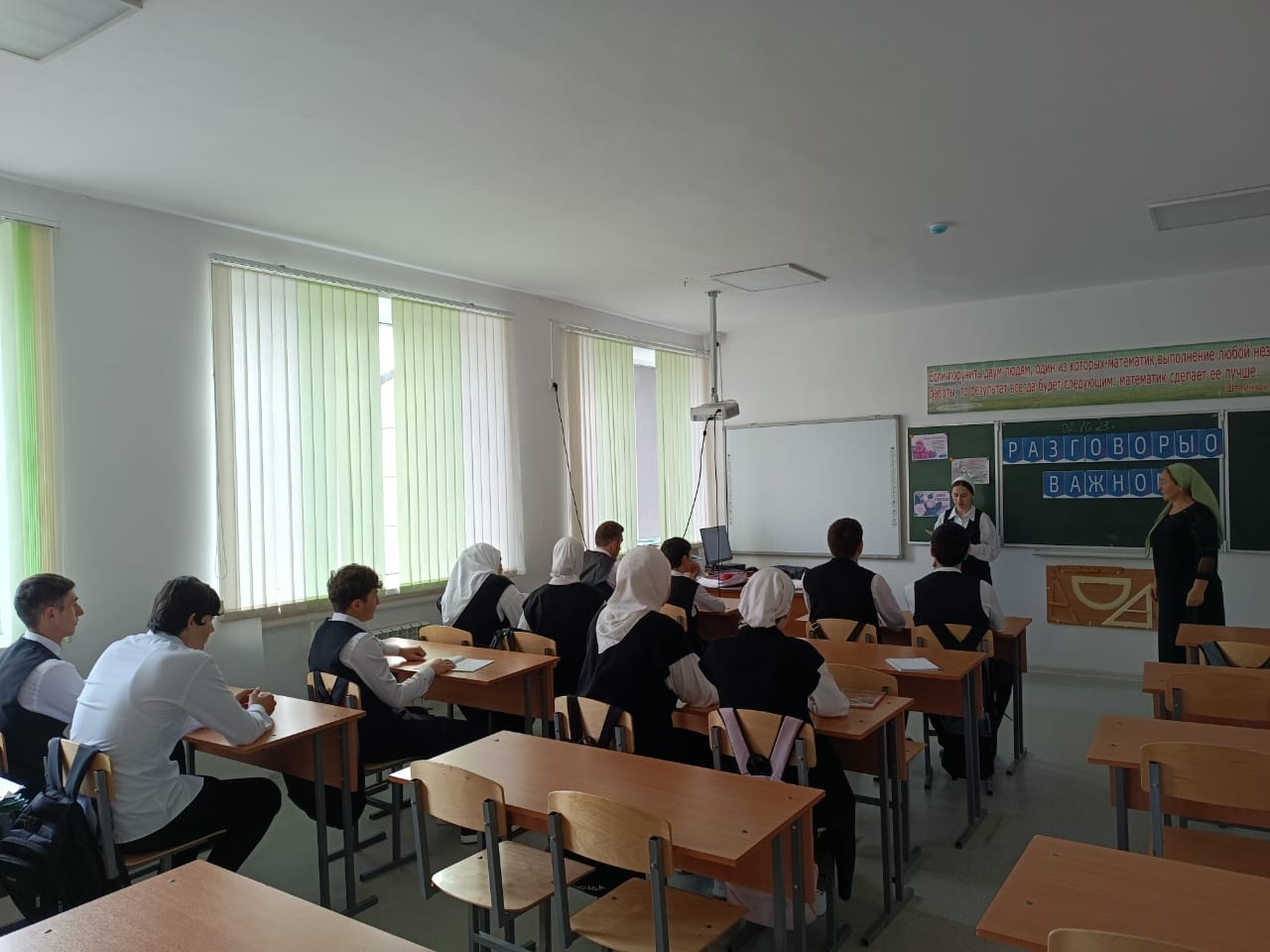02.10.2023г. в МБОУ "Веденская СОШ № 2" классные руководители с 1-11 классы провели занятие разговоры о важном на тему: "День учителя".