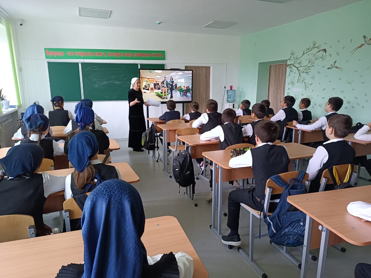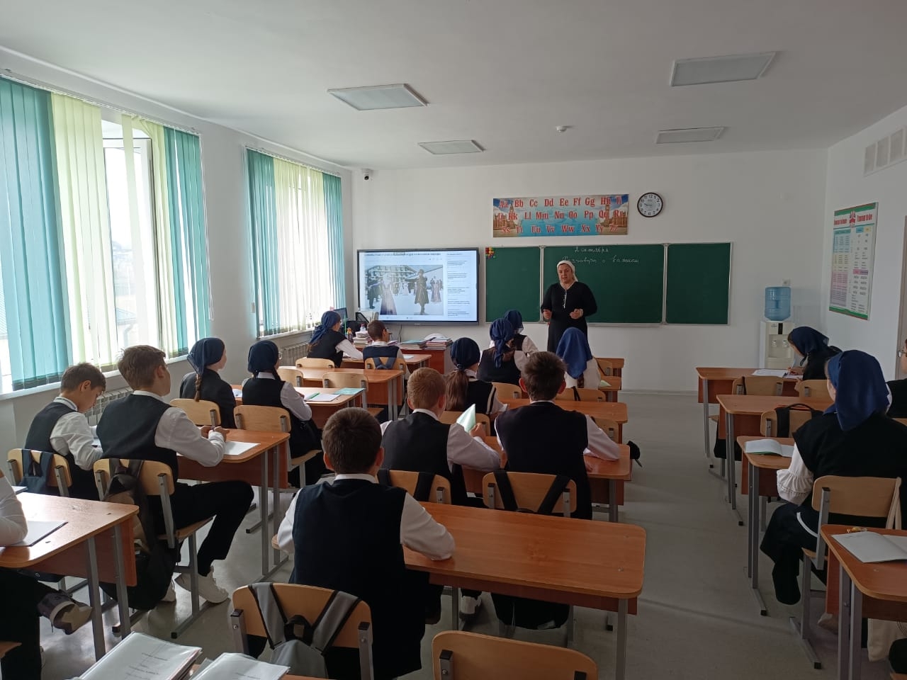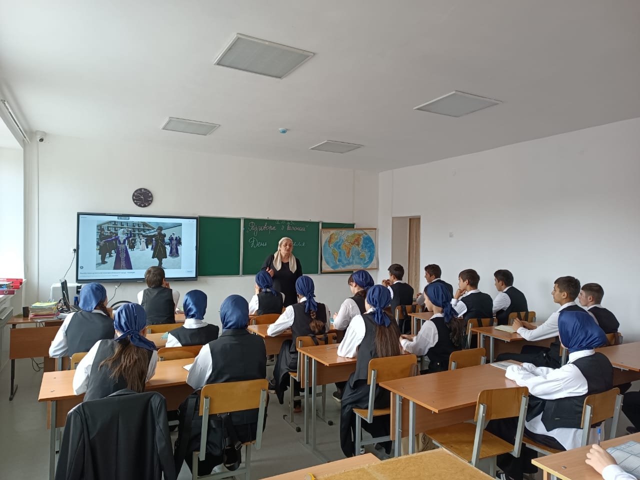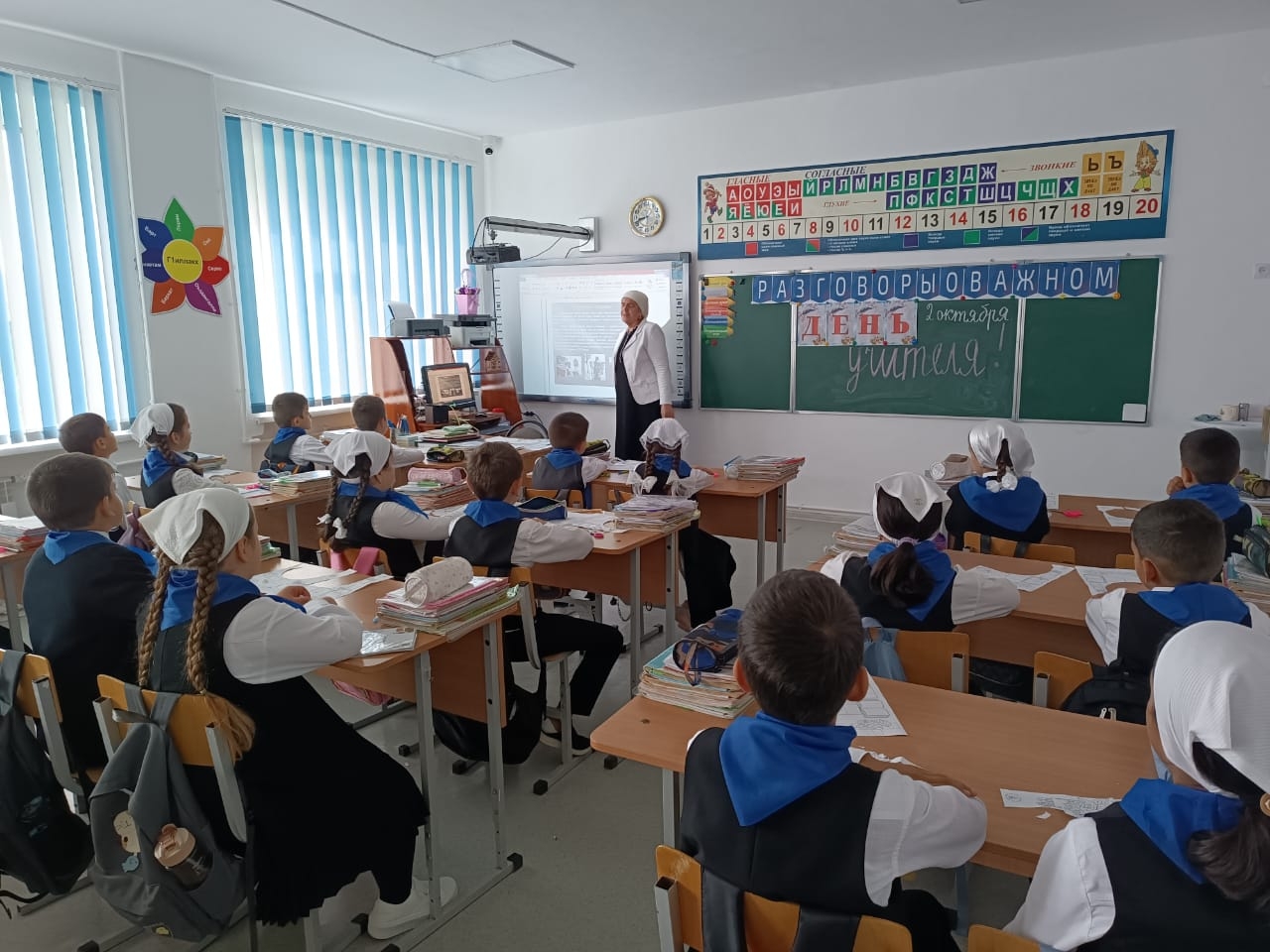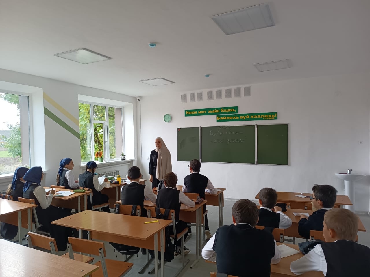 02.10.2023г. в МБОУ "Веденская СОШ № 2" классные руководители с 1-11 классы провели занятие разговоры о важном на тему: "День учителя".