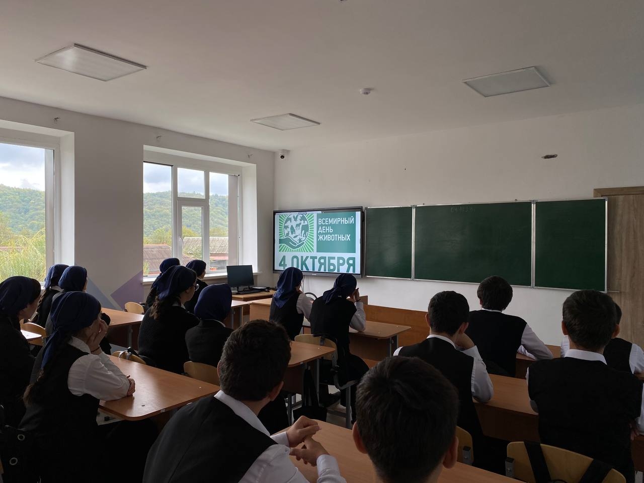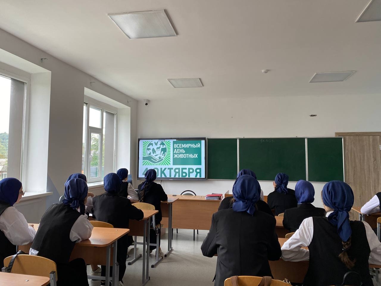 Всемирный день животных (World Animal Day), или Всемирный день защиты животных, отмечаемый во всем мире ежегодно 4 октября, был учрежден на Международном конгрессе сторонников движения в защиту природы, проходившем в 1931 году во Флоренции (Италия), и призван обратить внимание человечества на проблемы остальных обитателей планеты. Сегодня в школе по этому поводу советник директора по воспитанию и взаимодействию с детскими общественными объединениями провел лекцию, ознакомив учащихся с важным днём, с целью привития и развития у детей любви и сострадания к животным. Так же в в классах прошел кинолекторий, на котором дети просмотрели известные советские и современные мультфильмы и фильмы посвященные животным и заботе о них.
