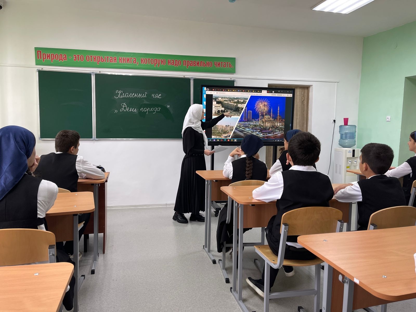 Классный руководитель 7 «Б» класса Адузаева Иман Саламбековна 05.10.2023г. провела классный час на тему: «День Города».