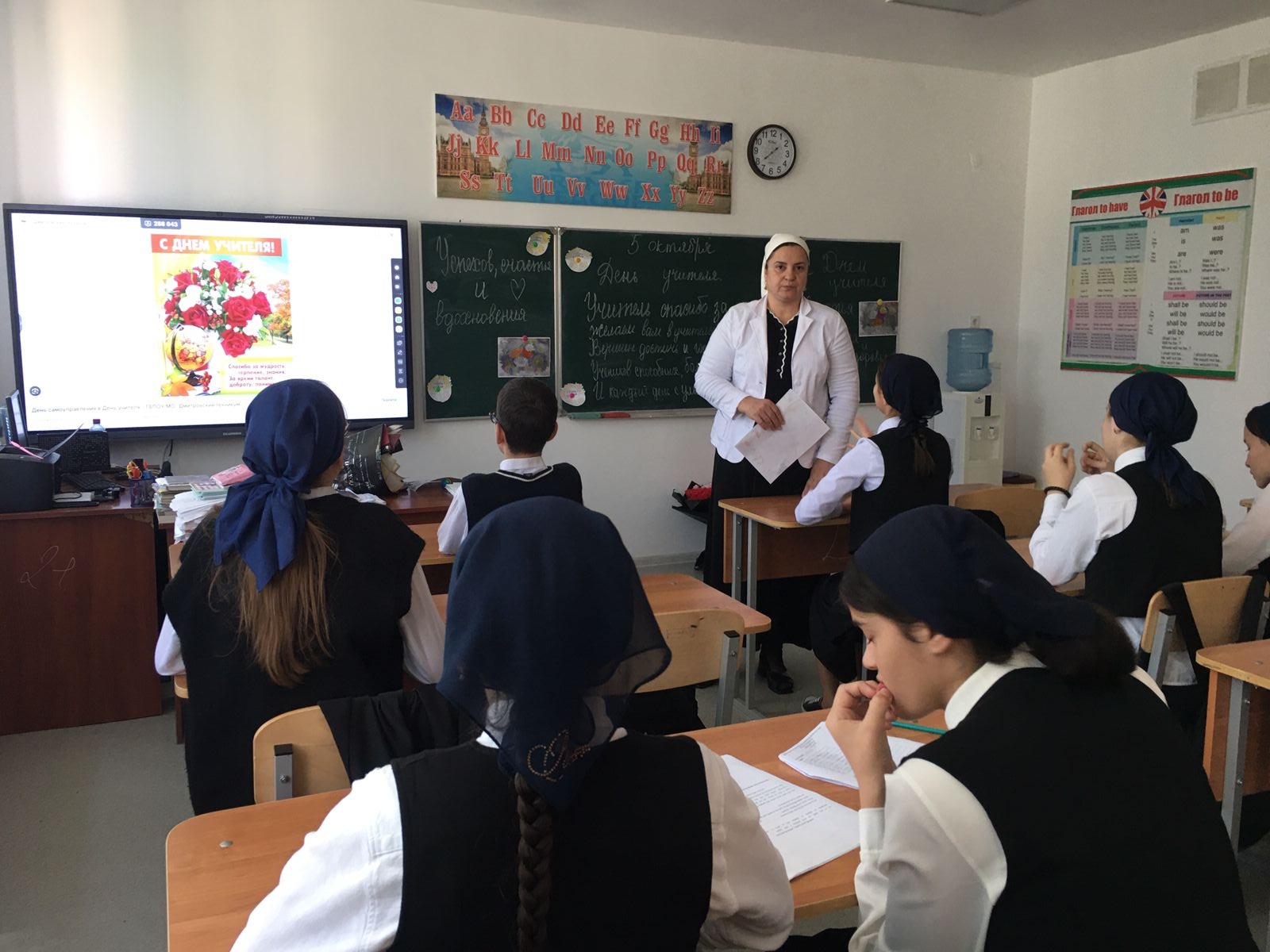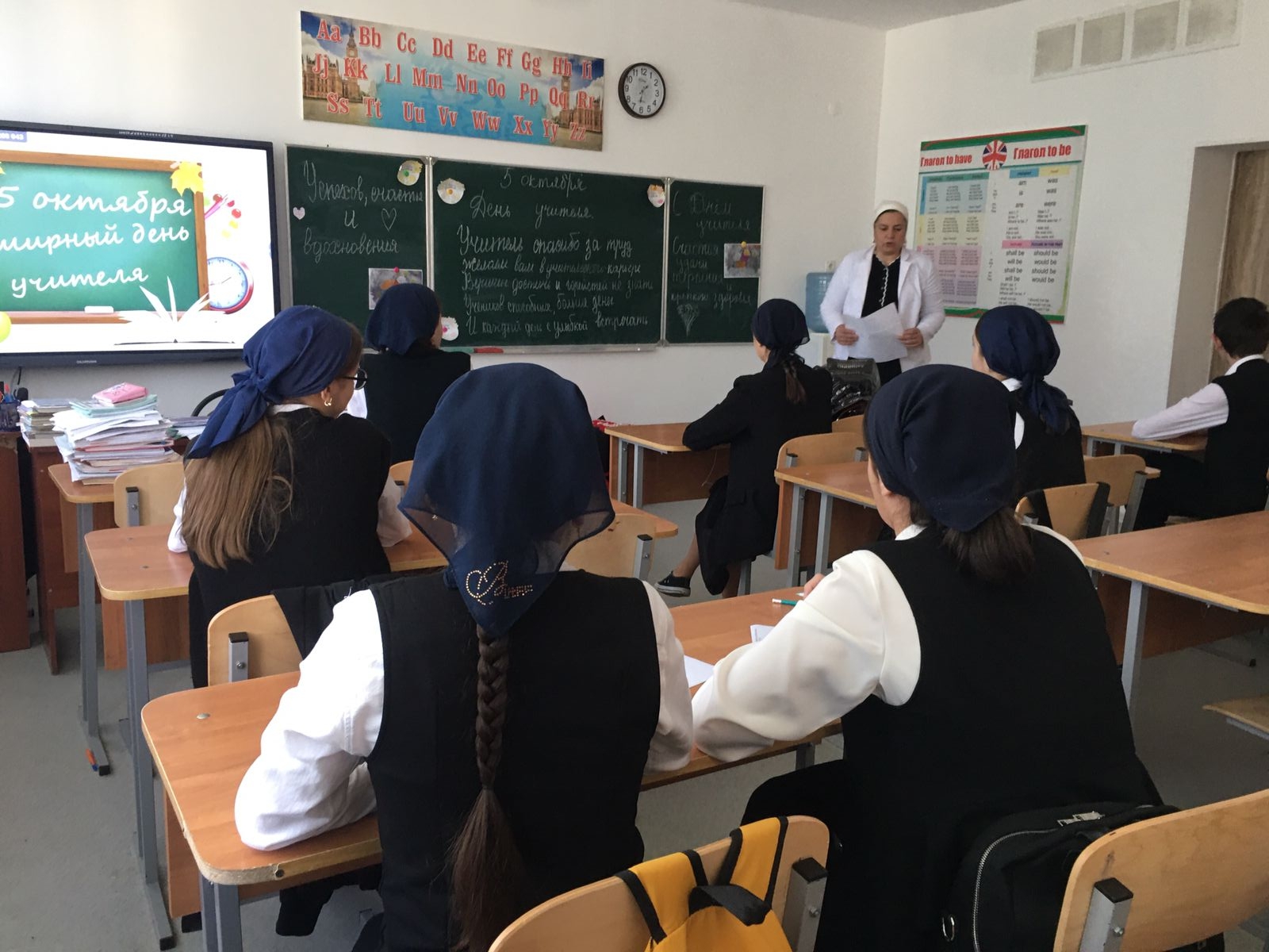 06.10.2023 года в 8 а классе проведен классный час, посвященный Дню учителя. Мероприятие проведено в целях воспитания чувства уважения к профессии учитель, приобщения учащихся к общим нравственным ценностям общества.