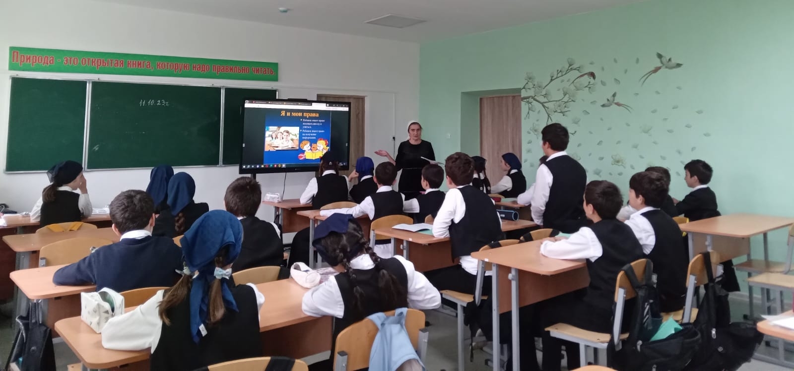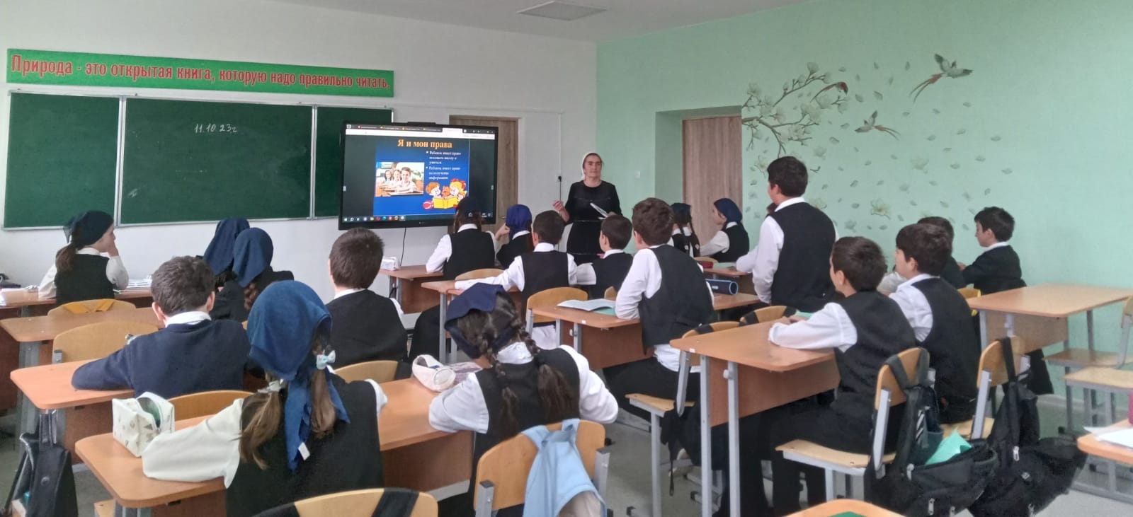 Классный руководитель Баймурадова Х.Ю. 11.10.23г. провела в 5 классе классный час на тему : "Мои права и обязанности" . Целью данного мероприятия являлось: повышение уровня правовой культуры школьников.