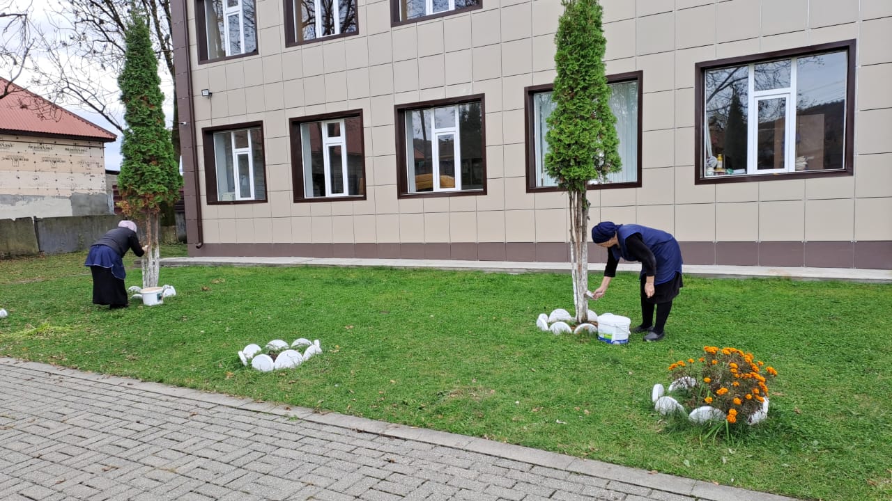 В рамках субботника работниками были побелены деревья и столбы, произведена обрезка деревьев и кустарников, вывезен мусор, очищены внутренние дороги и тротуары. Усилиями коллектива была выполнена вырубка сорной растительности.