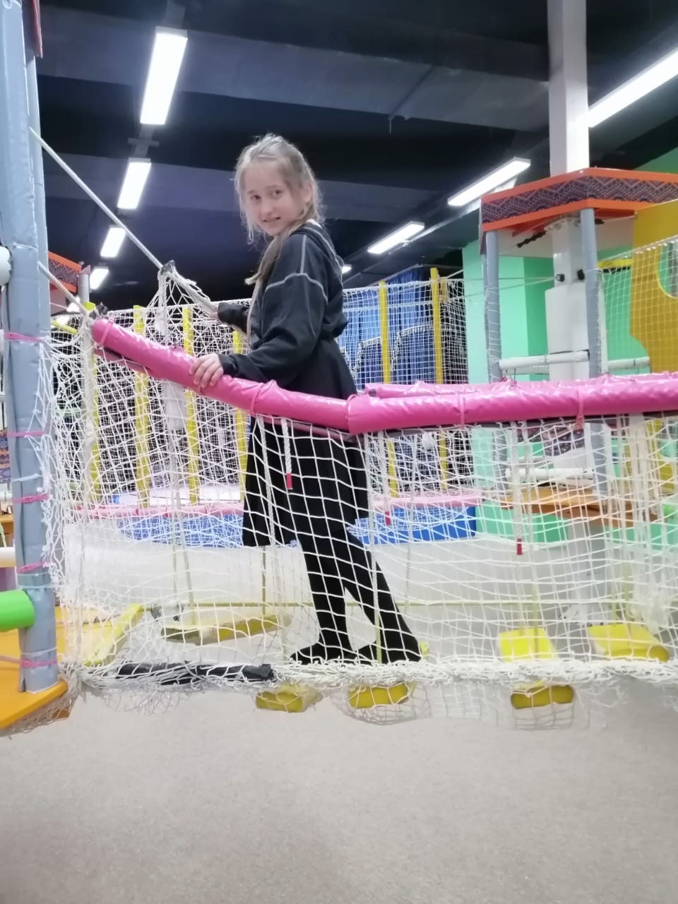 В Дельфинарии дети увидели представление с участием четырех дельфинов, которые показывали чудеса ловкости, отбивая мячи, висевшие высоко над поверхностью бассейна.