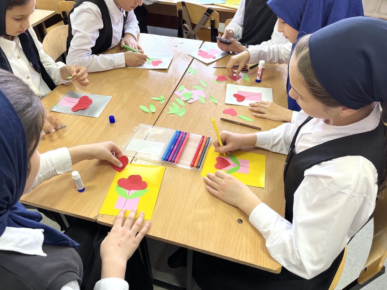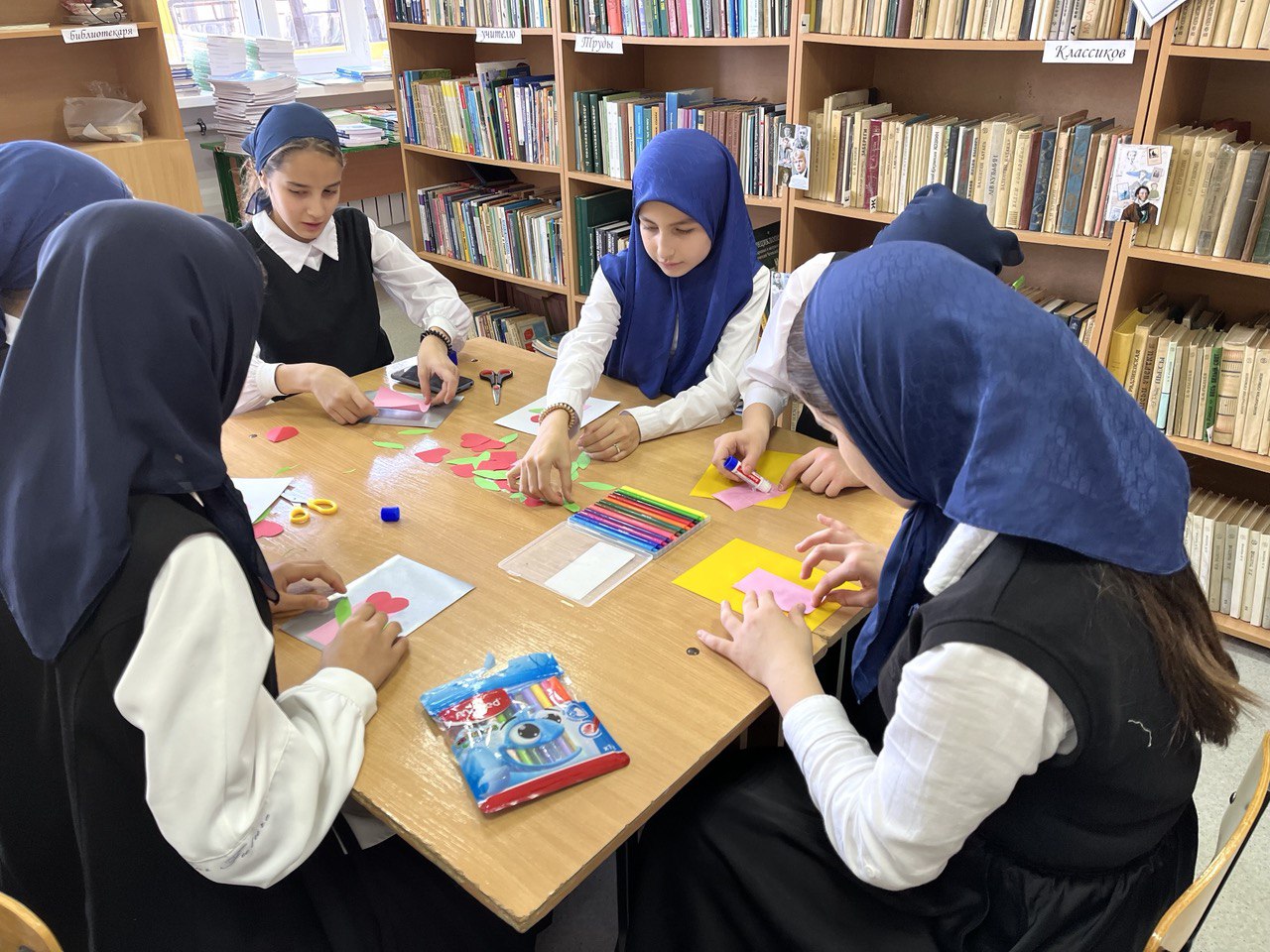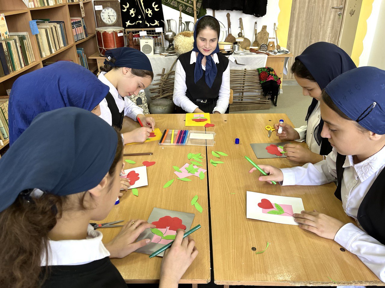 В преддверии праздника Дня Матери в Школьной библиотеке прошёл мастер класс «Открытка для мамы».