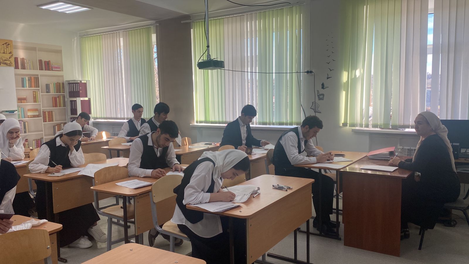 На экзамене присутствует независимый наблюдатель Исмаилова Марха Шайхиевна- главный специалист отдела аттестации.