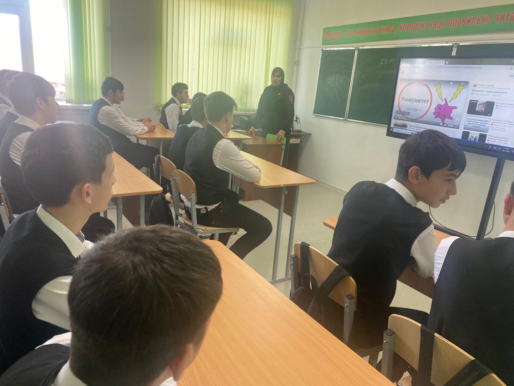 29.11.202329.11.2023 г. проведена встреча учащихся со старшим инспектором ПДН ОПДН ОУУП и ПДН ОМВД России по Веденскому району ЧР, майором полиции Арсалиевой Ларисой Тупаловной.