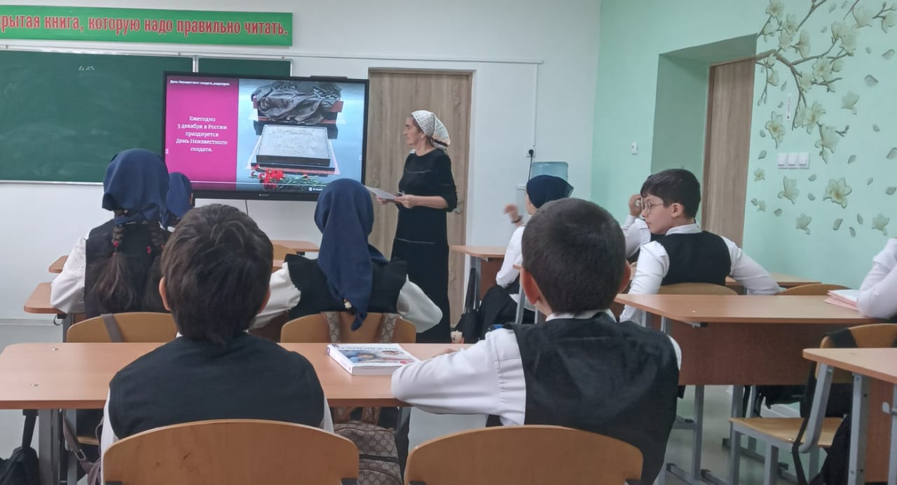 06.12.2023г. Баймурадова Х.Ю. , в 5 классе провела классный час на тему : "Имя твое неизвестно, подвиг бессмертен".