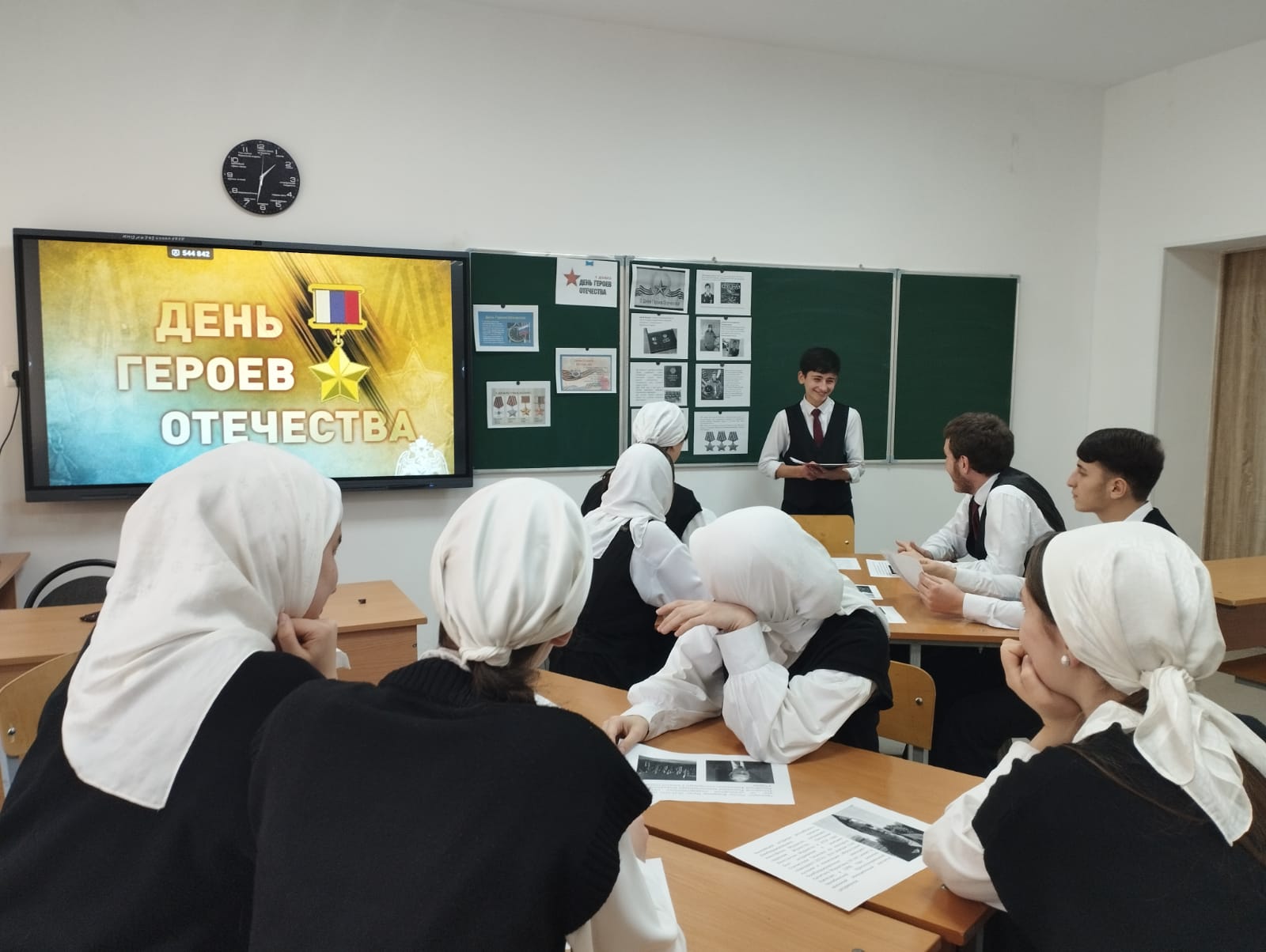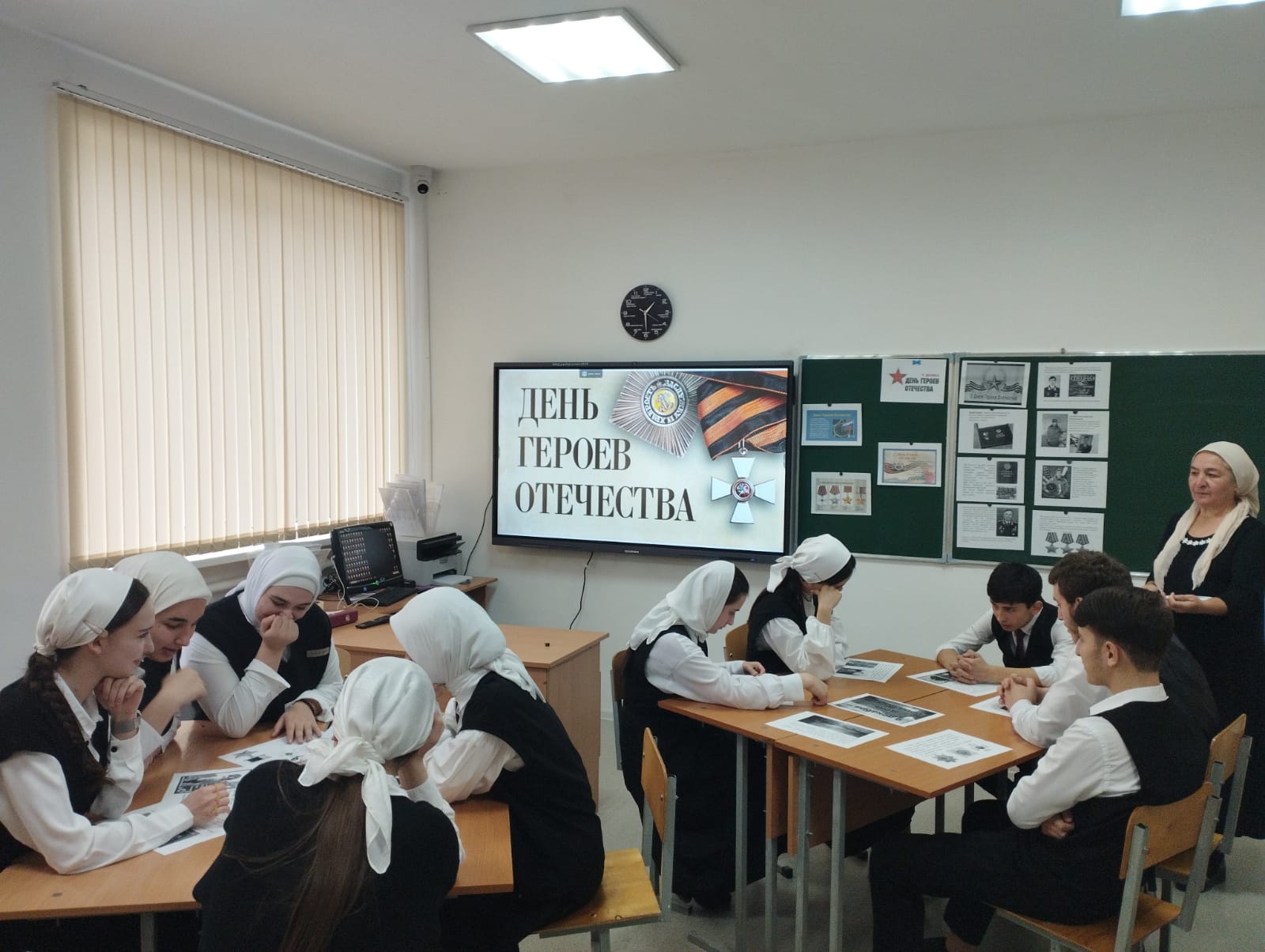 04.12.23 Халилаева Э.Ш провела классный час в 11 классе ко Дню Героя Отчества.