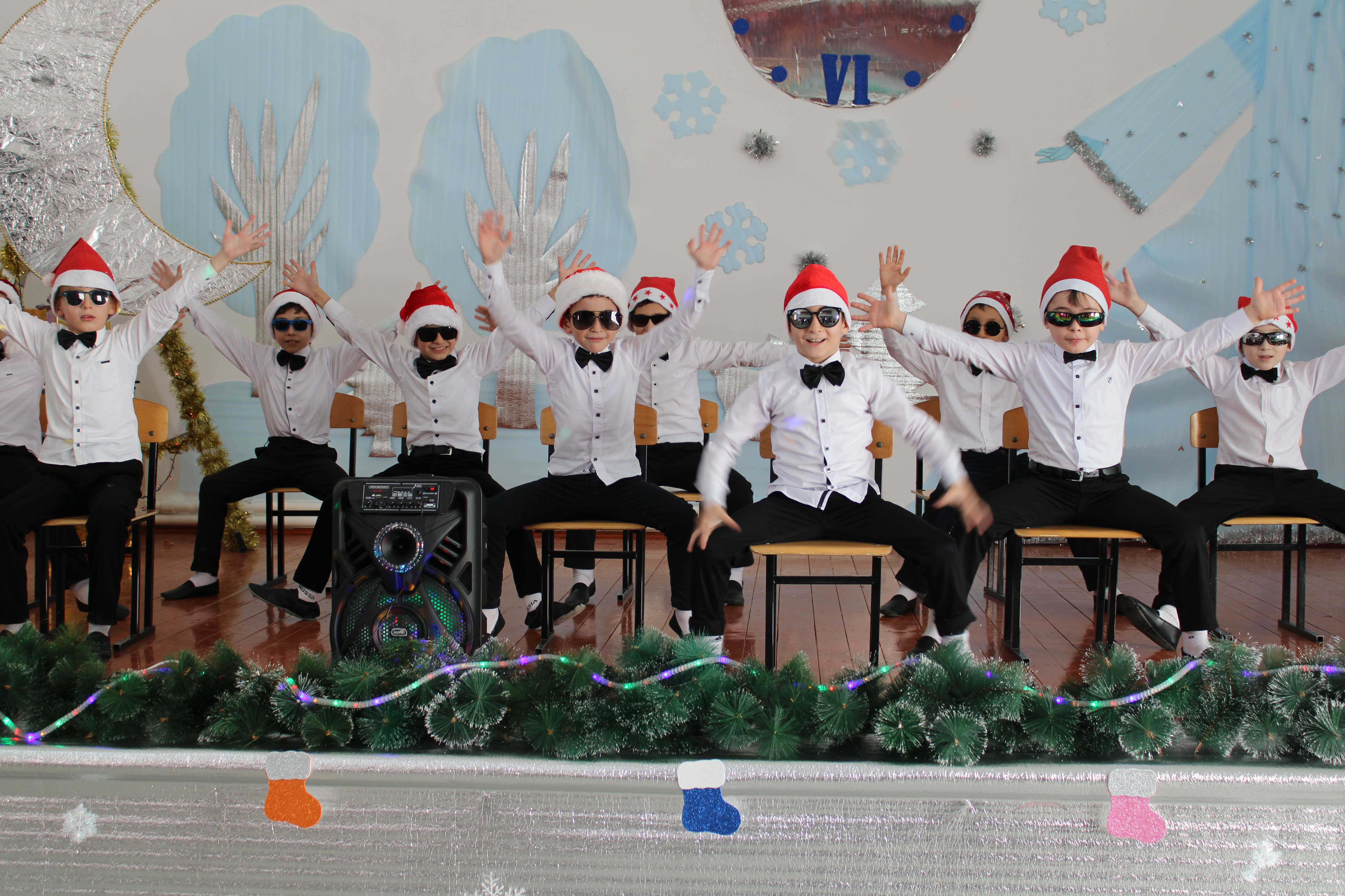 Новогодний праздник прошел в украшенном актовом зале. Учащиеся начальных классов пришли нарядные, веселые , в предвкушении праздника. И их надежды оправдались. Обучающиеся и педагоги в полной мере продемонстрировали свои творческие способности. Песни и танцы сменяли друг друга.
