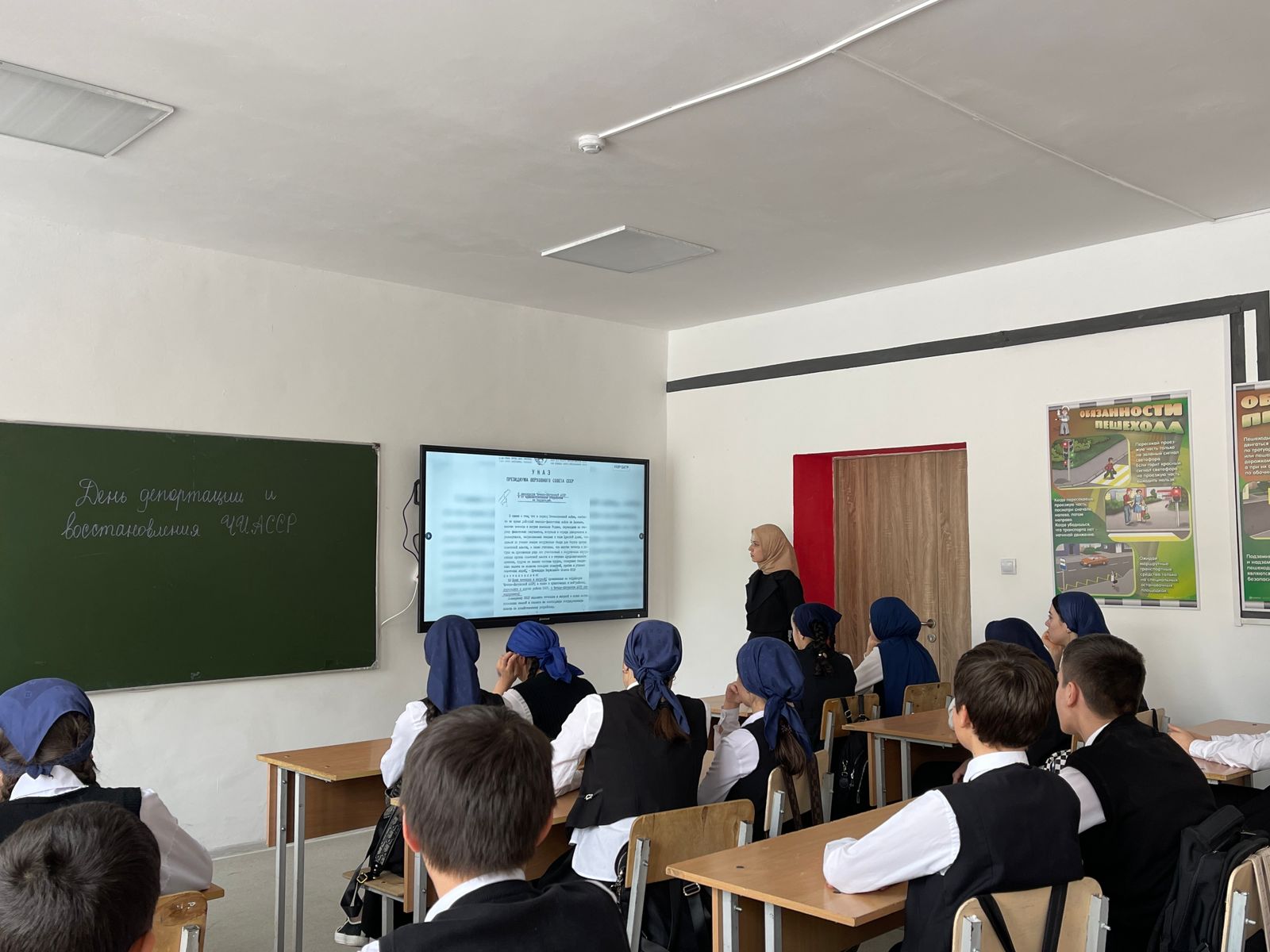 В 7 «б»,в 7 «в» кл. 12.01.24г. классные руководители провели классный час на тему «День восстановления ЧИАССР»