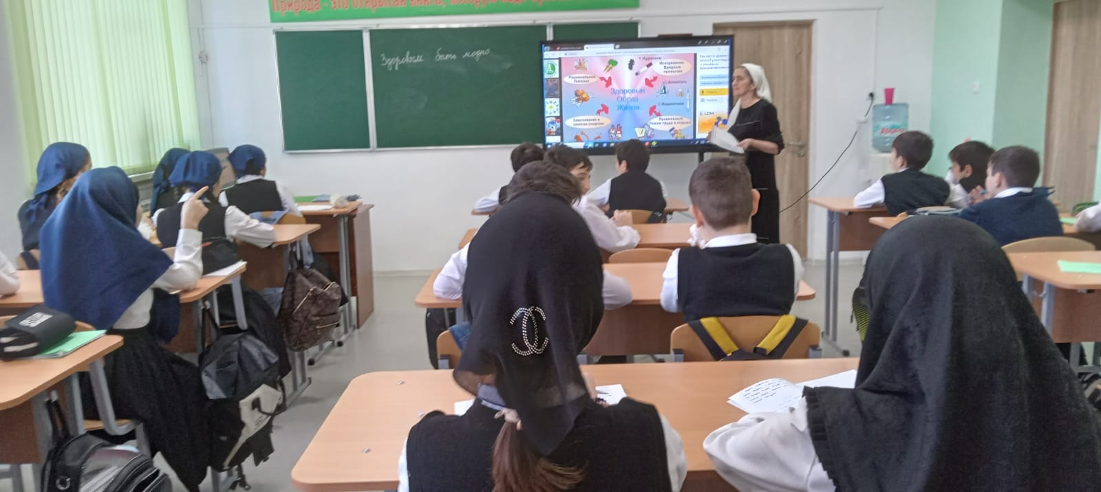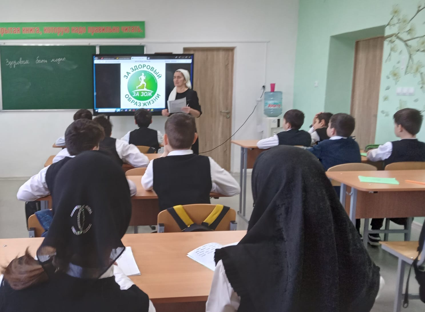 17.01.2024г. Баймурадова Х.Ю. в 5 классе провела классный час на тему : " Здоровым быть модно " .