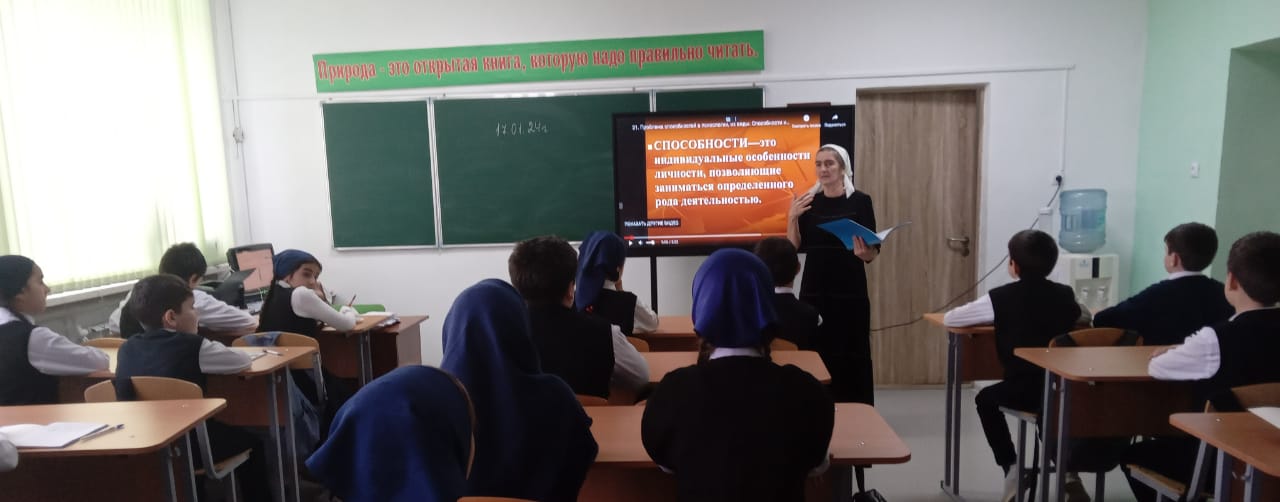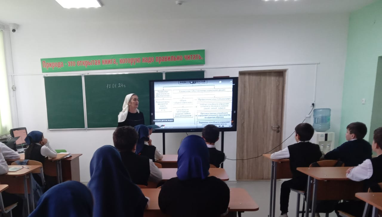 17.01.2024г. Баймурадова Х.Ю. провела внеклассное мероприятие на тему: " Исследование личных особенностей и способностей". Цель способствовать выбору профессии в раннем возрасте, расширению и углублению знаний школьников о профессиях.