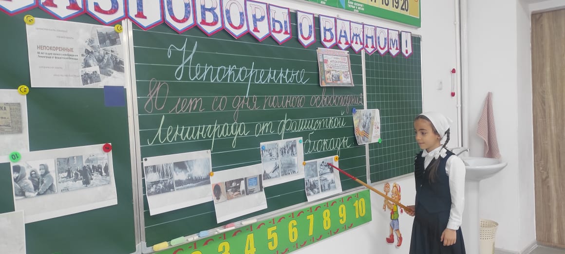 22.01.202422 января прошли внеурочные занятия из цикла "Разговоры о важном" на тему: «Непокоренные. 80 лет со дня полного освобождения Ленинграда от фашистской блокады».